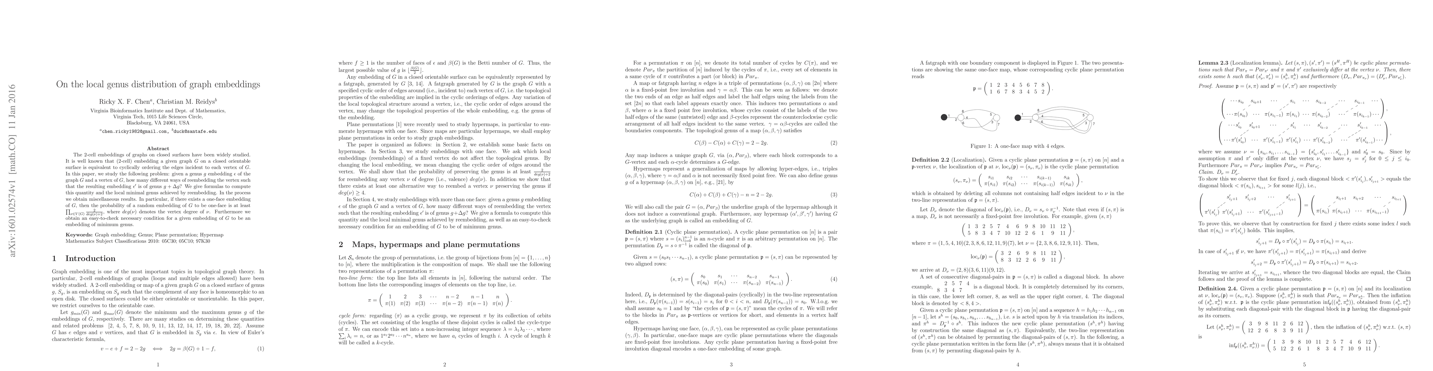 The $2$-cell embeddings of graphs on closed surfaces have been widely studied. It is well known that ($2$-cell) embedding a given graph $G$ on a closed orientable surface is equivalent to cyclically ordering the edges incident to each vertex of $G$. In this paper, we study the following problem: given a genus $g$ embedding $\epsilon$ of the graph $G$ and a vertex of $G$, how many different ways of reembedding the vertex such that the resulting embedding $\epsilon'$ is of genus $g+\Delta g$? We give formulas to compute this quantity and the local minimal genus achieved by reembedding. In the process we obtain miscellaneous results. In particular, if there exists a one-face embedding of $G$, then the probability of a random embedding of $G$ to be one-face is at least $\prod_{\nu\in V(G)}\frac{2}{deg(\nu)+2}$, where $deg(\nu)$ denotes the vertex degree of $\nu$. Furthermore we obtain an easy-to-check necessary condition for a given embedding of $G$ to be an embedding of minimum genus.