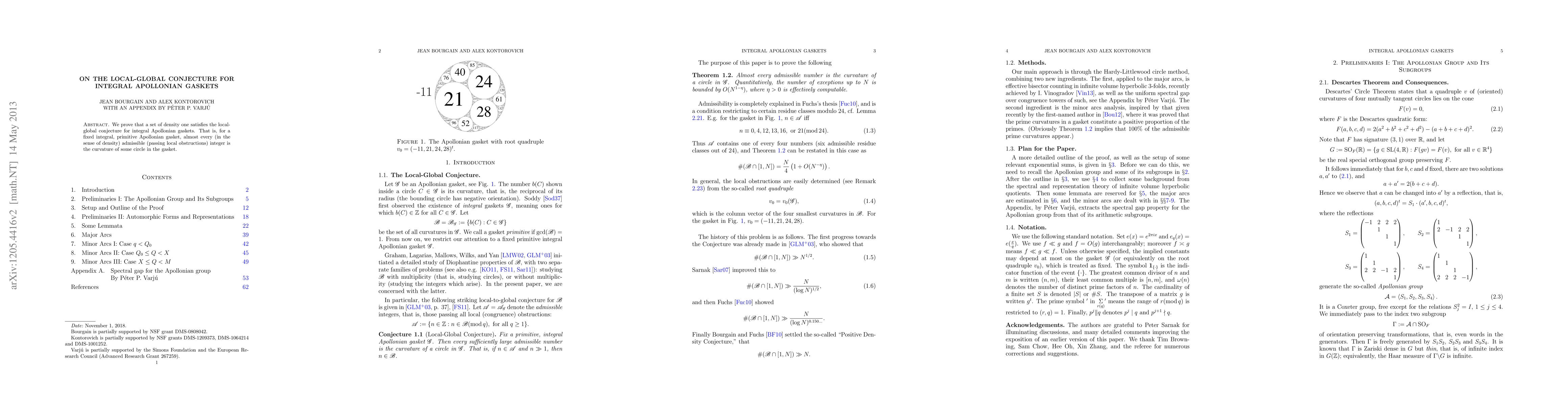 The paper proves that almost every integer that passes local obstructions satisfies the local-global conjecture for integral Apollonian gaskets, meaning such integers are curvatures of circles within the gasket. This resolves the conjecture for a density one set of admissible integers.