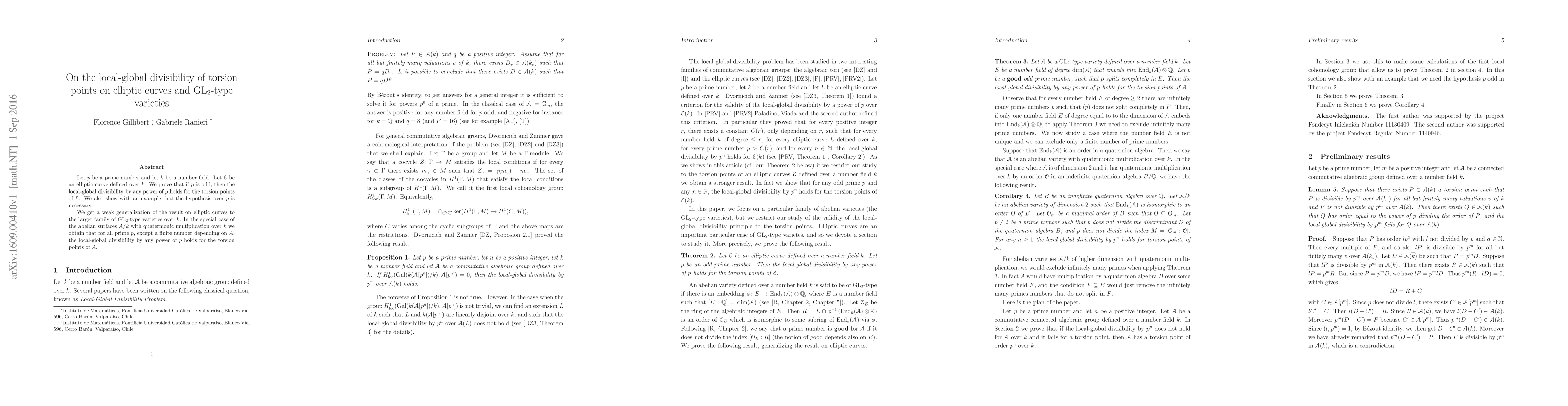 This paper proves local-global divisibility by any power of an odd prime for torsion points on elliptic curves over number fields, highlighting the necessity of the prime condition. It extends these findings to a broader class of ${\rm GL}_2$-type varieties, and specifically shows similar results for abelian surfaces with quaternionic multiplication.