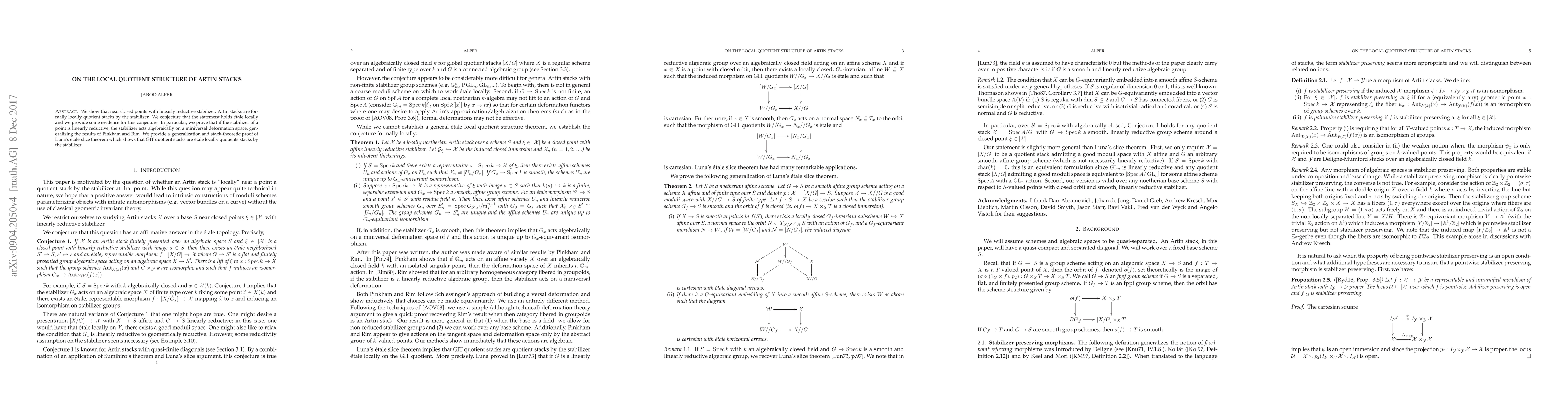 We show that near closed points with linearly reductive stabilizer, Artin stacks are formally locally quotient stacks by the stabilizer. We conjecture that the statement holds etale locally and we provide some evidence for this conjecture. In particular, we prove that if the stabilizer of a point is linearly reductive, the stabilizer acts algebraically on a miniversal deformation space generalizing results of Pinkham and Rim.