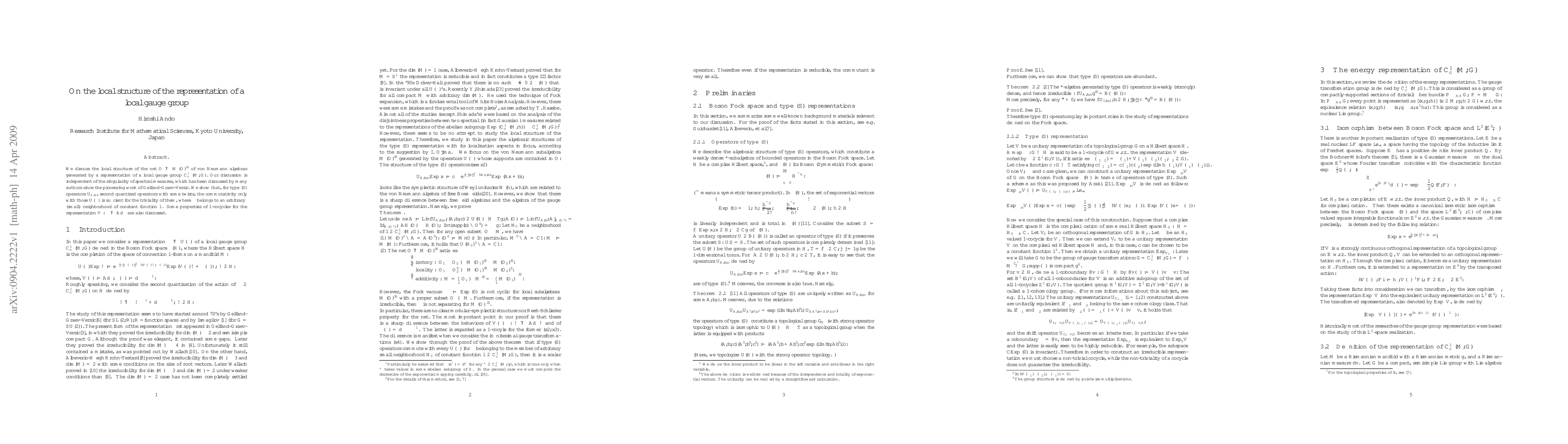 This paper investigates the local structure of energy representations of a local gauge group, finding that even reducible representations have small commutants, with irreducibility depending on manifold dimensionality.