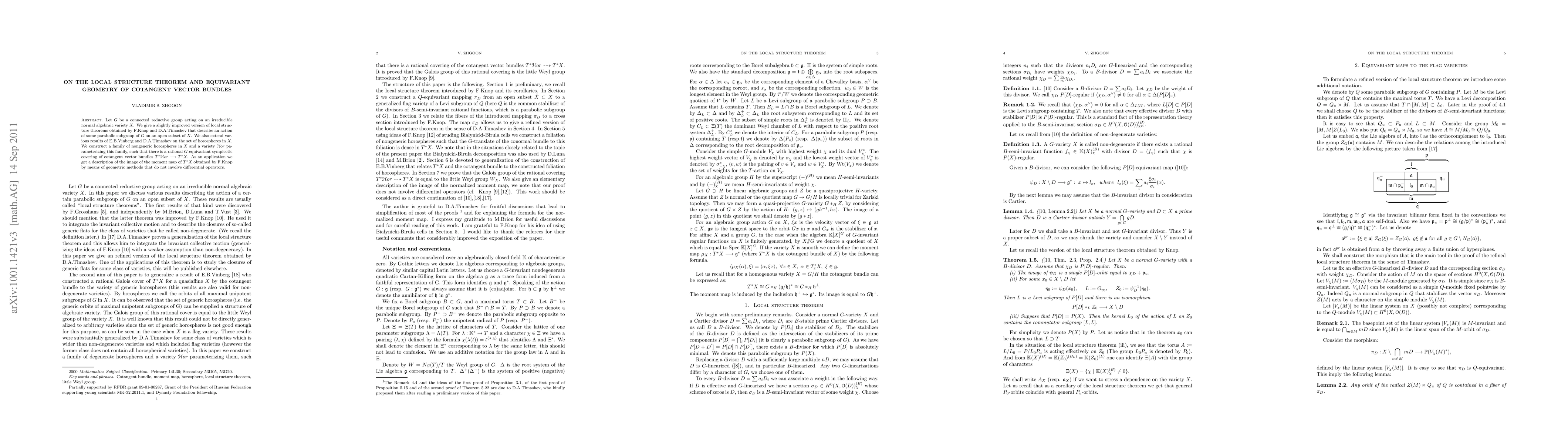This paper improves local structure theorems for reductive group actions on algebraic varieties and extends results on horospheres, constructing a rational equivariant symplectic covering of cotangent bundles, ultimately providing a geometric description of the moment map's image without differential operators.