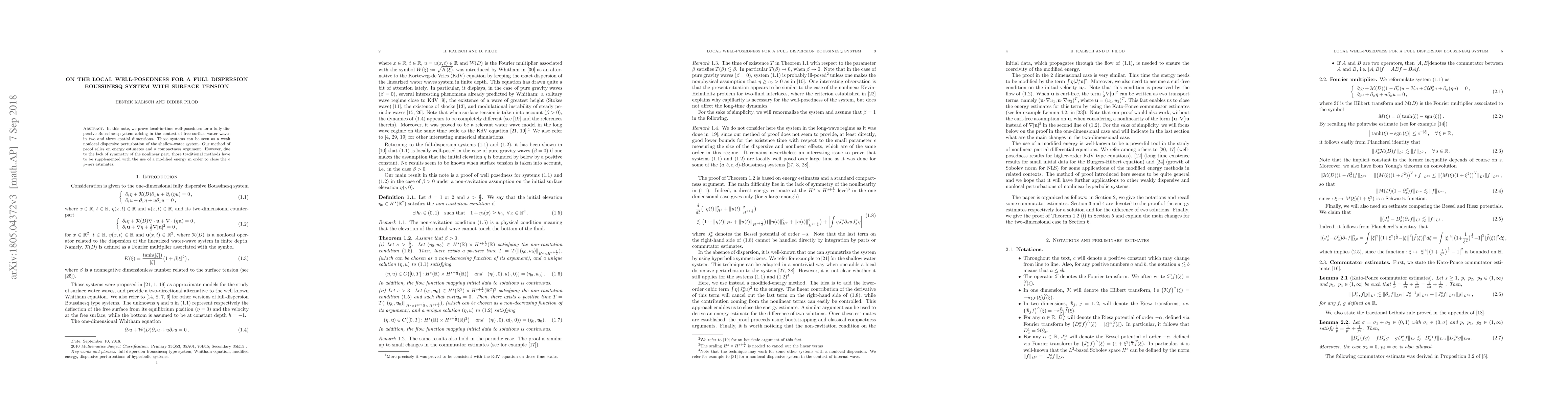This paper proves local-in-time well-posedness for a dispersive Boussinesq system modeling free surface water waves, using energy estimates and compactness arguments. A modified energy approach is necessary due to the lack of symmetry in the nonlinear terms.