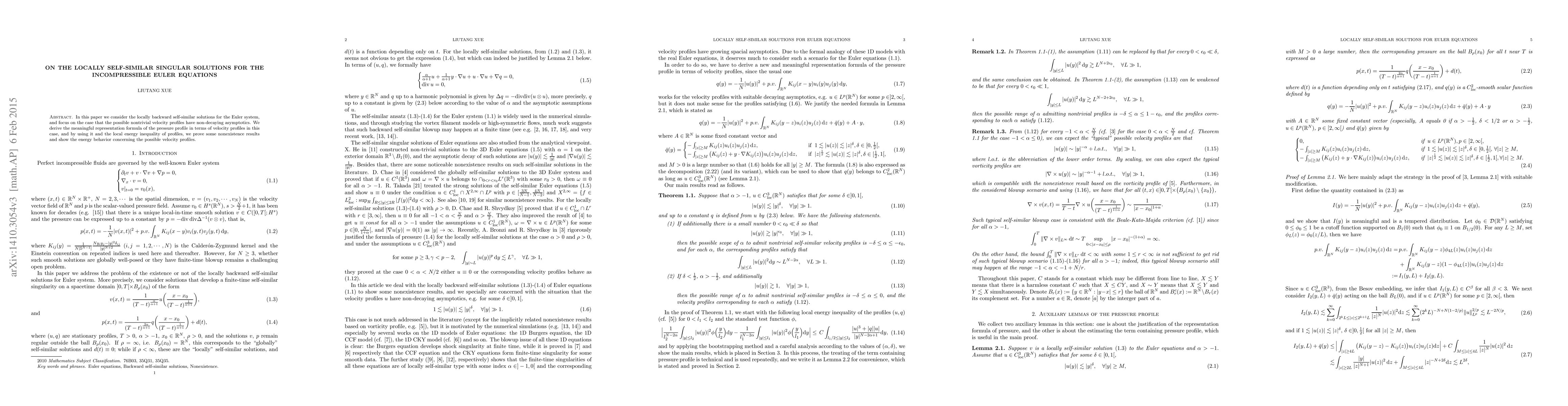 This paper studies locally self-similar solutions to the incompressible Euler equations, focusing on non-decaying velocity profiles and deriving a formula for pressure profiles, which reveals conditions under which certain solutions do not exist or exhibit specific energy behavior.