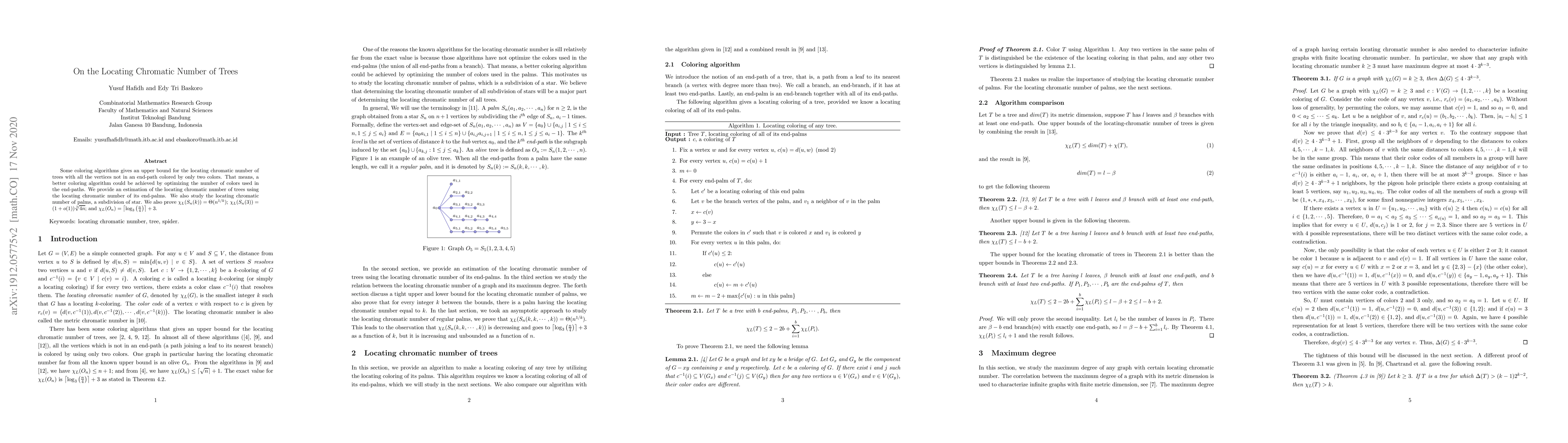 This paper explores the locating chromatic number of trees, focusing on optimizing color usage in end-paths. It provides an estimation method using the locating chromatic number of end-palms and proves specific bounds for the locating chromatic number of palms and other tree structures.