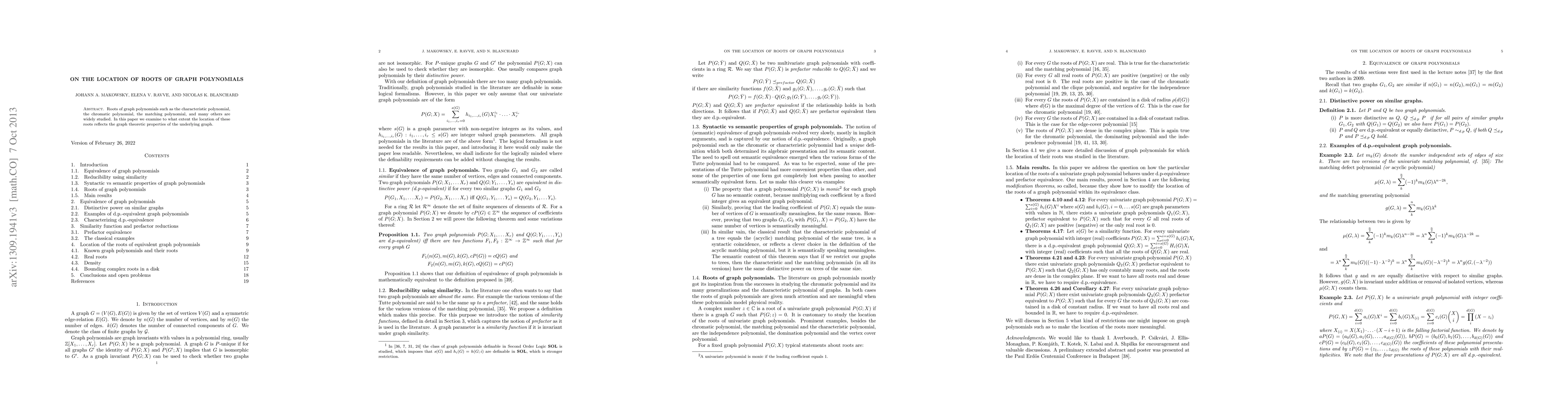 Roots of graph polynomials such as the characteristic polynomial, the chromatic polynomial, the matching polynomial, and many others are widely studied. In this paper we examine to what extent the location of these roots reflects the graph theoretic properties of the underlying graph.