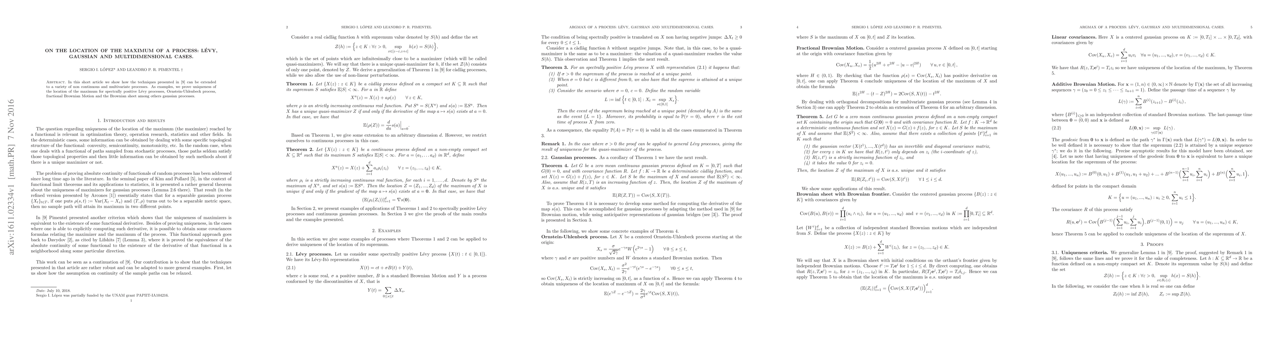 In this short article we show how the techniques presented in arXiv:1207.4469 can be extended to a variety of non continuous and multivariate processes. As examples, we prove uniqueness of the location of the maximum for spectrally positive L\'evy processes, Ornstein-Uhlenbeck process, fractional Brownian Motion and the Brownian sheet among others gaussian processes.