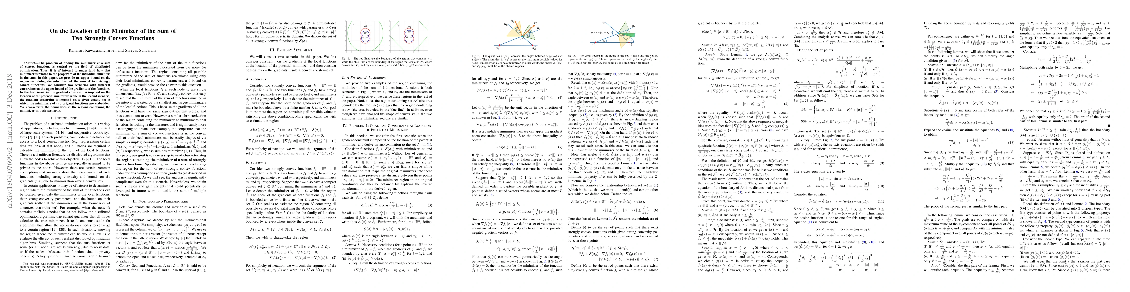 The problem of finding the minimizer of a sum of convex functions is central to the field of distributed optimization. Thus, it is of interest to understand how that minimizer is related to the properties of the individual functions in the sum. In this paper, we provide an upper bound on the region containing the minimizer of the sum of two strongly convex functions. We consider two scenarios with different constraints on the upper bound of the gradients of the functions. In the first scenario, the gradient constraint is imposed on the location of the potential minimizer, while in the second scenario, the gradient constraint is imposed on a given convex set in which the minimizers of two original functions are embedded. We characterize the boundaries of the regions containing the minimizer in both scenarios.