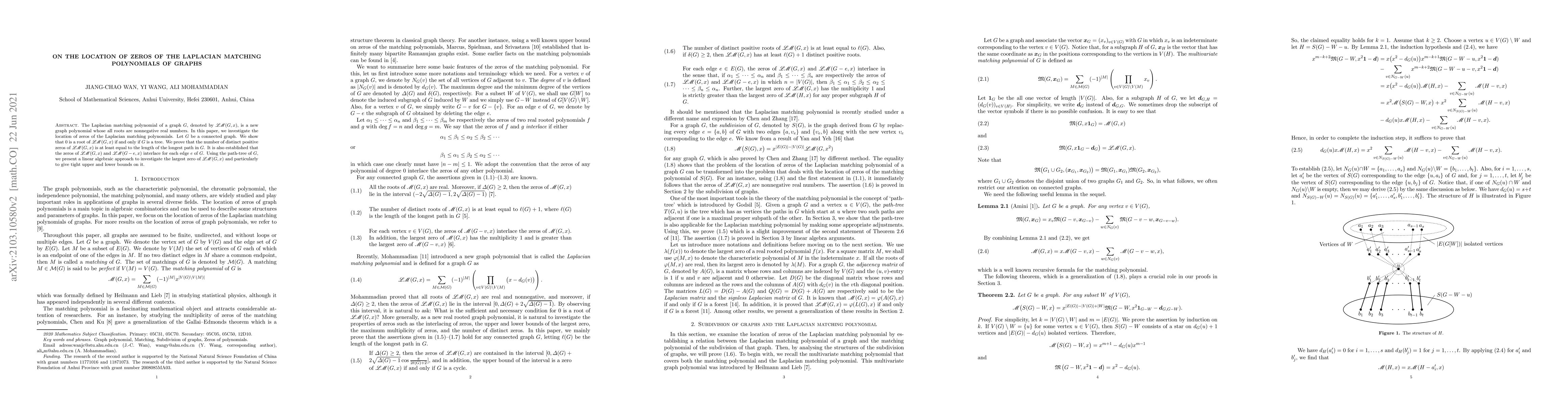 This research paper explores the Laplacian matching polynomials of graphs, proving that 0 is a root if and only if the graph is a tree. It also shows the number of distinct positive zeros is at least the length of the longest path in the graph. The study establishes interlacing zeros for edge removal and provides bounds on the largest zero using a linear algebraic approach via the graph's path-tree.