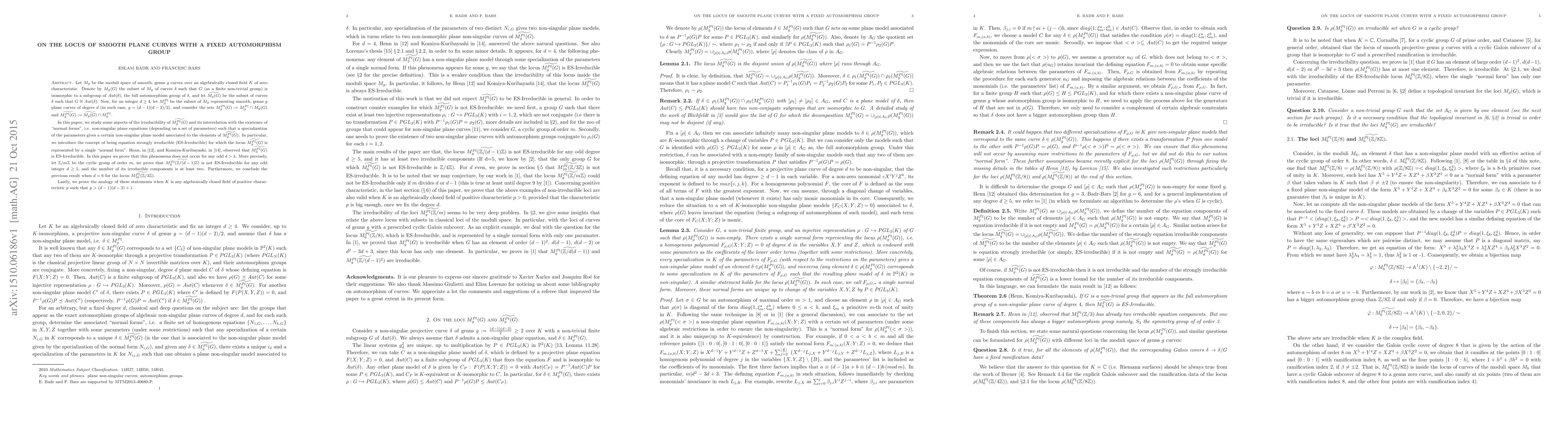 This research paper explores the irreducibility of the locus of smooth plane curves with a fixed automorphism group, introducing the concept of 'strongly irreducible' (ES-Irreducible). The study reveals that for odd d > 4, the locus is not ES-Irreducible, having at least two irreducible components. This is proven for odd integers d ≥ 5 and the locus M_10^{Pl}(Z/(3Z)) when d=6. The findings extend to algebraically closed fields of positive characteristic p, where p > (d-1)(d-2) + 1.