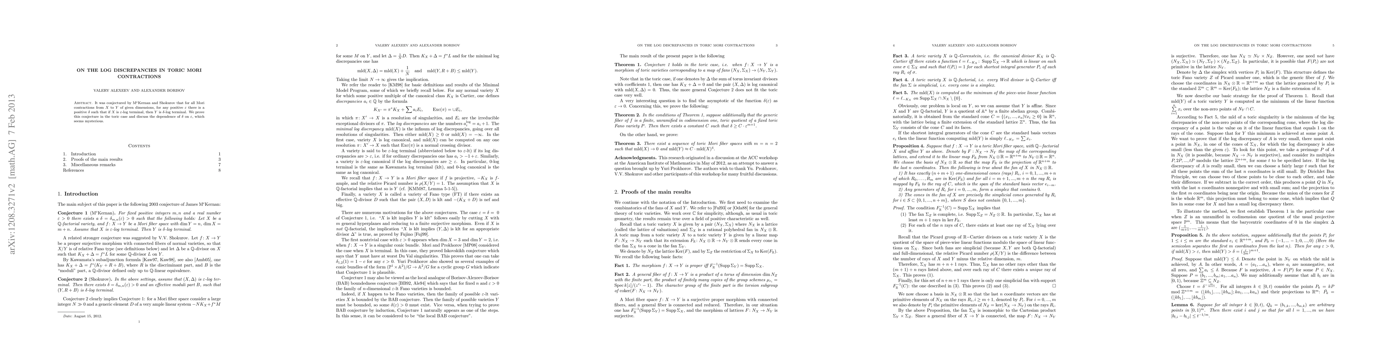 This paper proves McKernan and Shokurov's conjecture for toric Mori contractions regarding the preservation of log terminal properties, establishing a relationship between epsilon and delta in the context of log discrepancies. The study also explores the dependency of delta on epsilon, highlighting its complexity.
