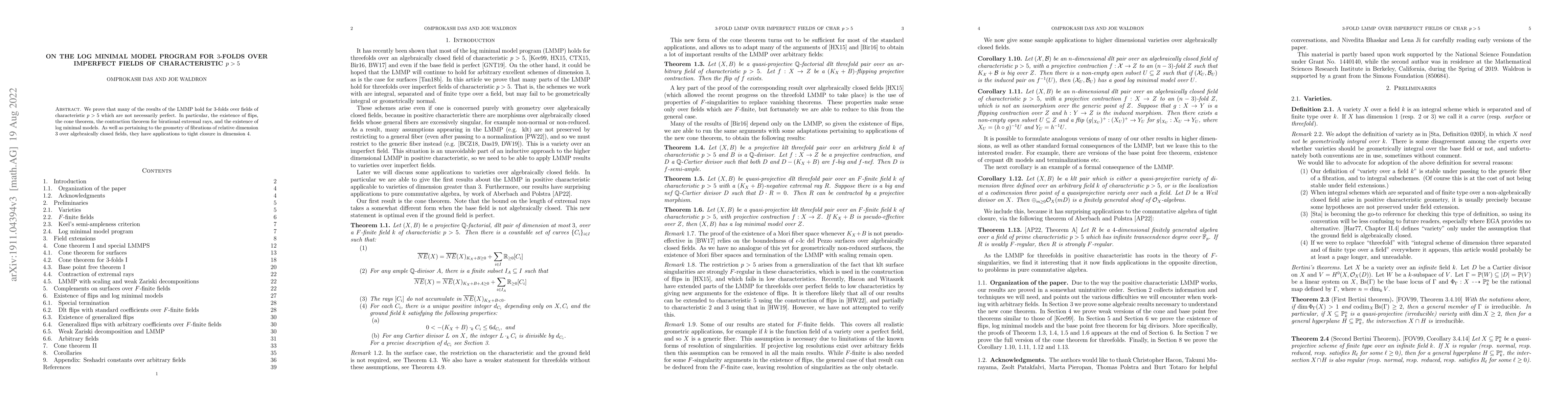 Summary: This paper proves that the log minimal model program (LMMP) for $3$-folds holds in characteristic $p>5$ for imperfect fields, establishing results like flips, the cone theorem, and the existence of log minimal models, with applications to fibrations and tight closure in dimension $4$.