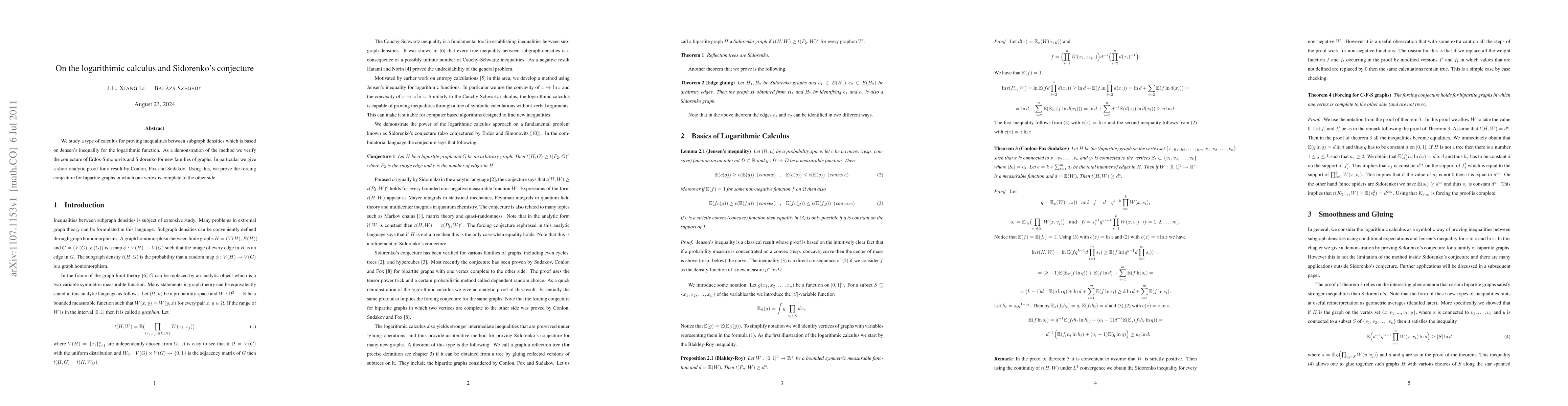 We study a type of calculus for proving inequalities between subgraph densities which is based on Jensen's inequality for the logarithmic function. As a demonstration of the method we verify the conjecture of Erd\"os-Simonovits and Sidorenko for new families of graphs. In particular we give a short analytic proof for a result by Conlon, Fox and Sudakov. Using this, we prove the forcing conjecture for bipartite graphs in which one vertex is complete to the other side.