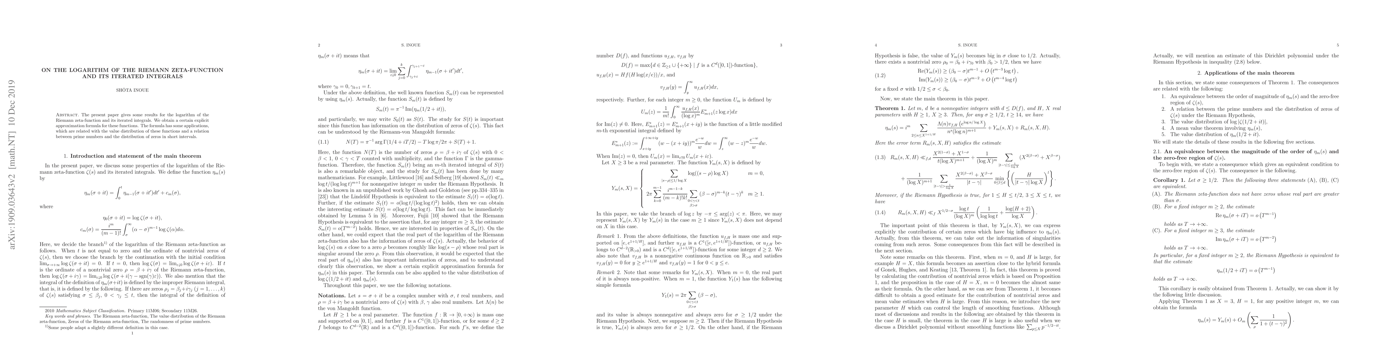 This paper gives some results for the logarithm of the Riemann zeta-function and its iterated integrals. We obtain a certain explicit approximation formula for these functions. The formula has some applications, which are related with the value distribution of these functions and a relation between prime numbers and the distribution of zeros in short intervals.