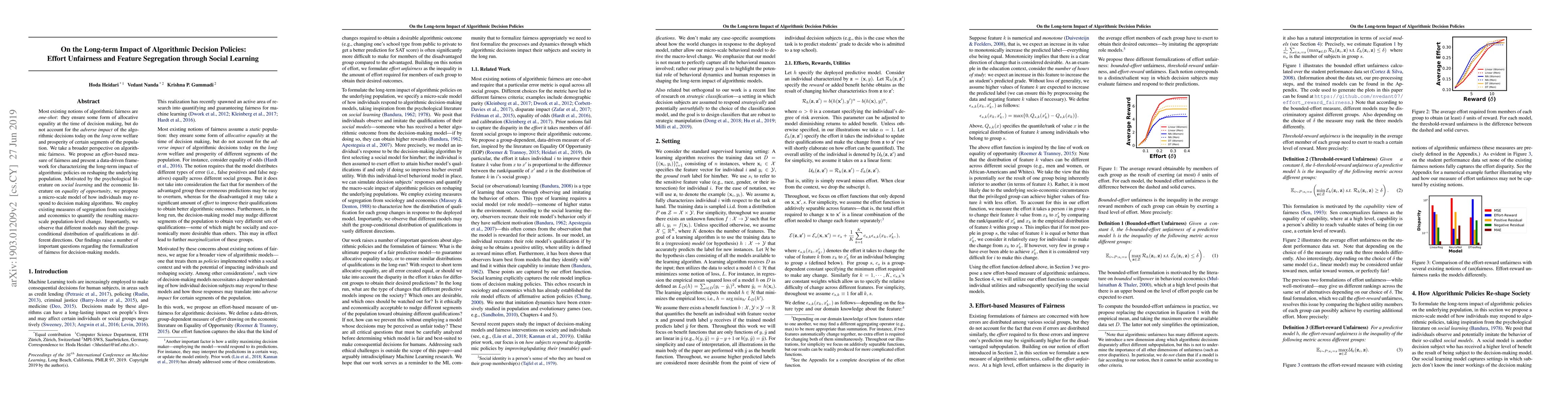 This paper proposes an effort-based measure of algorithmic fairness to assess long-term impacts on population welfare, emphasizing social learning and segregation effects. It introduces a data-driven framework to analyze how different algorithms reshape population dynamics and highlights the need for a broader formalization of fairness.