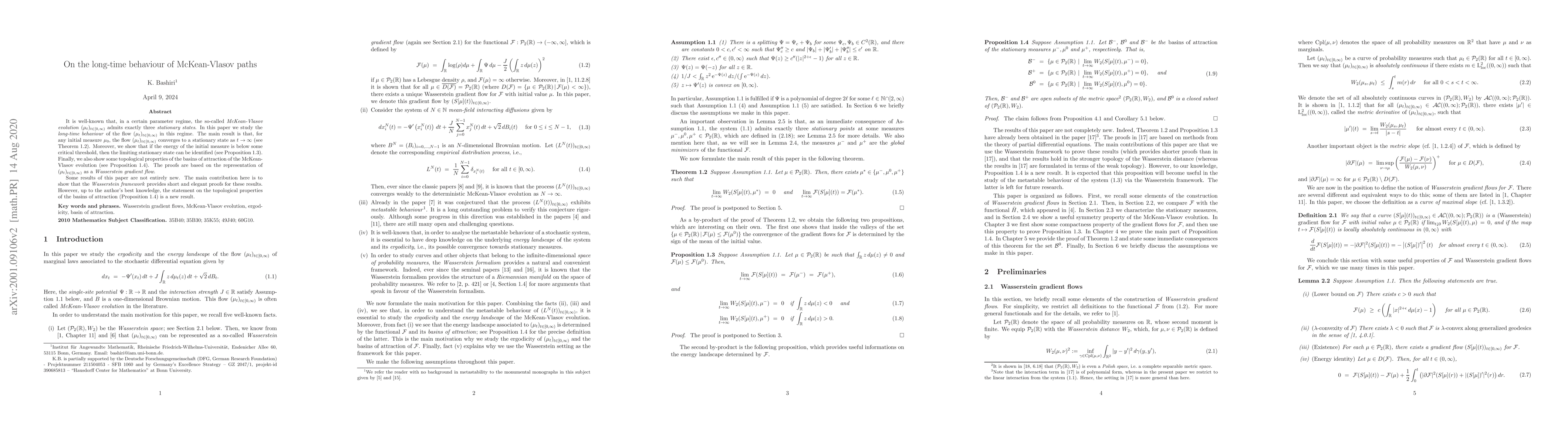 It is well-known that, in a certain parameter regime, the so-called McKean-Vlasov evolution $ (\mu_t)_{t\in [0,\infty)} $ admits exactly three stationary states. In this paper we study the long-time behaviour of the flow $ (\mu_t)_{t\in [0,\infty)} $ in this regime. The main result is that, for any initial measure $ \mu_0 $, the flow $ (\mu_t)_{t\in [0,\infty)} $ converges to a stationary state as $ t\rightarrow \infty $. Moreover, we show that if the energy of the initial measure is below some critical threshold, then the limiting stationary state can be identified. Finally, we also show some topological properties of the basins of attraction of the McKean-Vlasov evolution. The proofs are based on the representation of $ (\mu_t)_{t\in [0,\infty)} $ as a Wasserstein gradient flow. Some results of this paper are not entirely new. The main contribution here is to show that the Wasserstein framework provides short and elegant proofs for these results. However, up to the author's best knowledge, the statement on the topological properties of the basins of attraction is a new result.