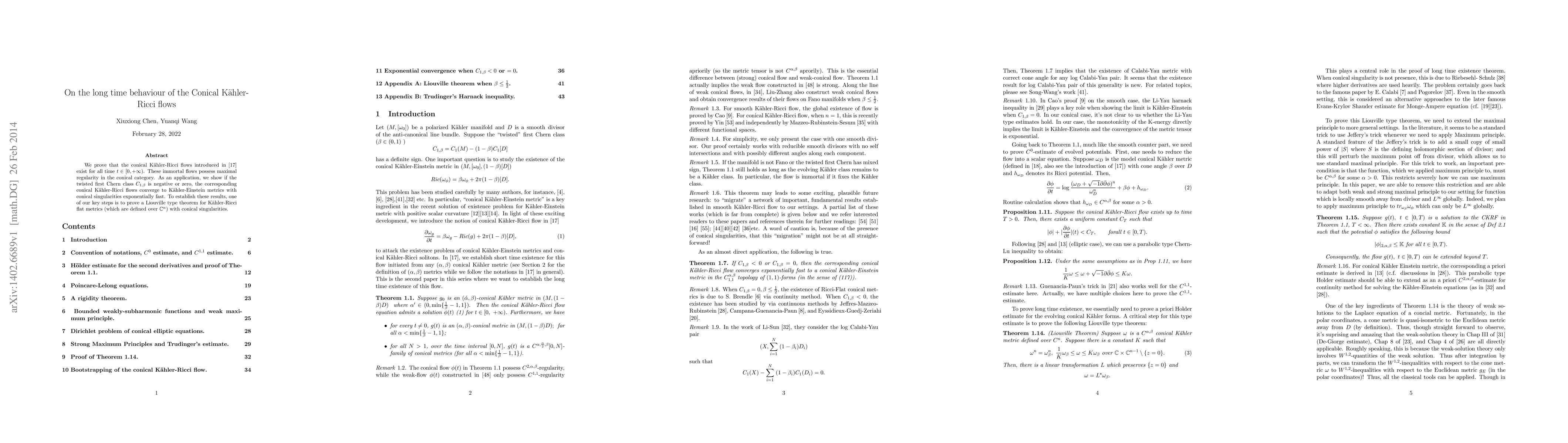 We prove that the conical K\"ahler-Ricci flows introduced in \cite{CYW} exist for all time $t\in [0,+\infty)$. These immortal flows possess maximal regularity in the conical category. As an application, we show if the twisted first Chern class $C_{1,\beta}$ is negative or zero, the corresponding conical K\"ahler-Ricci flows converge to K\"ahler-Einstein metrics with conical singularities exponentially fast. To establish these results, one of our key steps is to prove a Liouville type theorem for K\"ahler-Ricci flat metrics (which are defined over $\mathbb{C}^{n}$) with conical singularities.