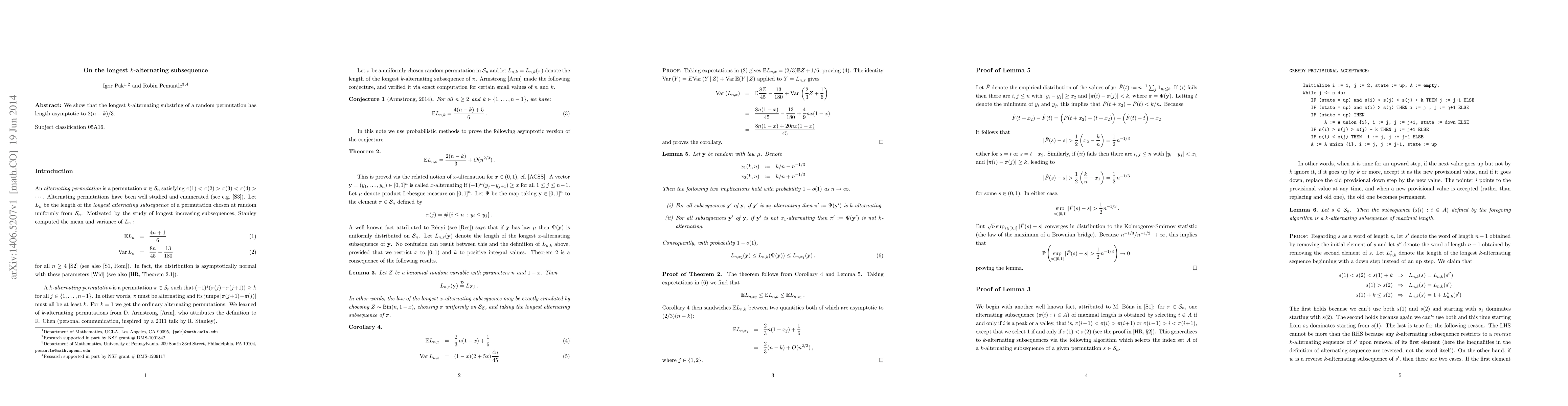 We show that the longest k-alternating substring of a random permutation has length asymptotic to 2 (n-k) / 3.