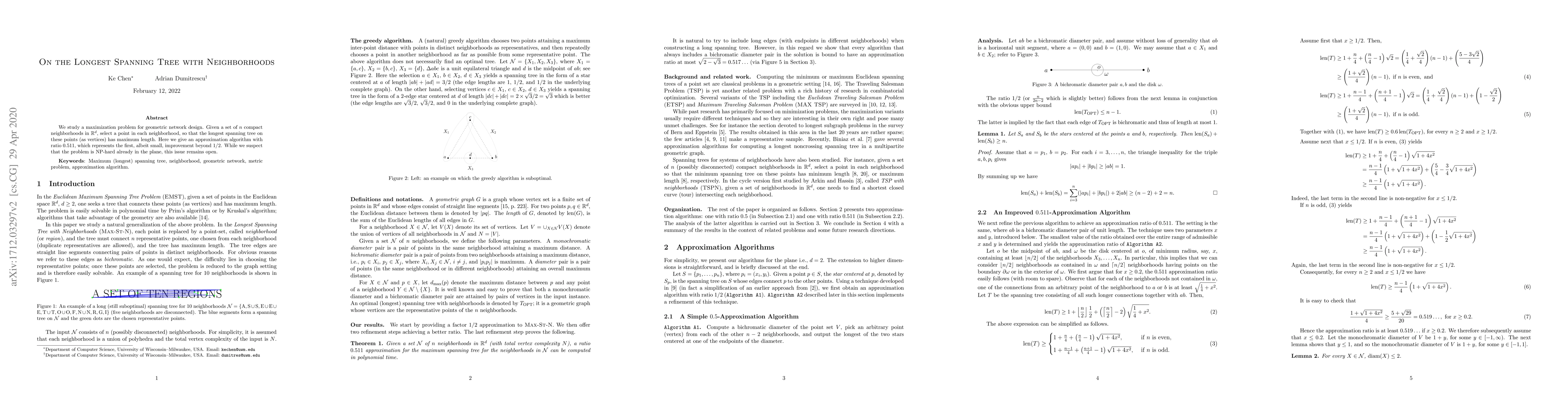 We study a maximization problem for geometric network design. Given a set of $n$ compact neighborhoods in $\mathbb{R}^d$, select a point in each neighborhood, so that the longest spanning tree on these points (as vertices) has maximum length. Here we give an approximation algorithm with ratio $0.511$, which represents the first, albeit small, improvement beyond $1/2$. While we suspect that the problem is NP-hard already in the plane, this issue remains open.