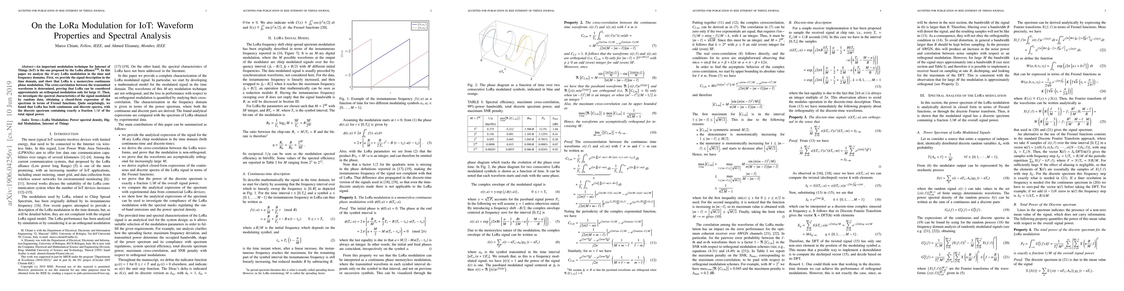 This paper analyzes the M-ary LoRa modulation technique for IoT, demonstrating that LoRa is a memoryless continuous phase modulation with an approximately orthogonal property for large M. It also reveals that LoRa's spectrum includes both continuous and discrete components, with the discrete spectrum holding 1/M of the total signal power.