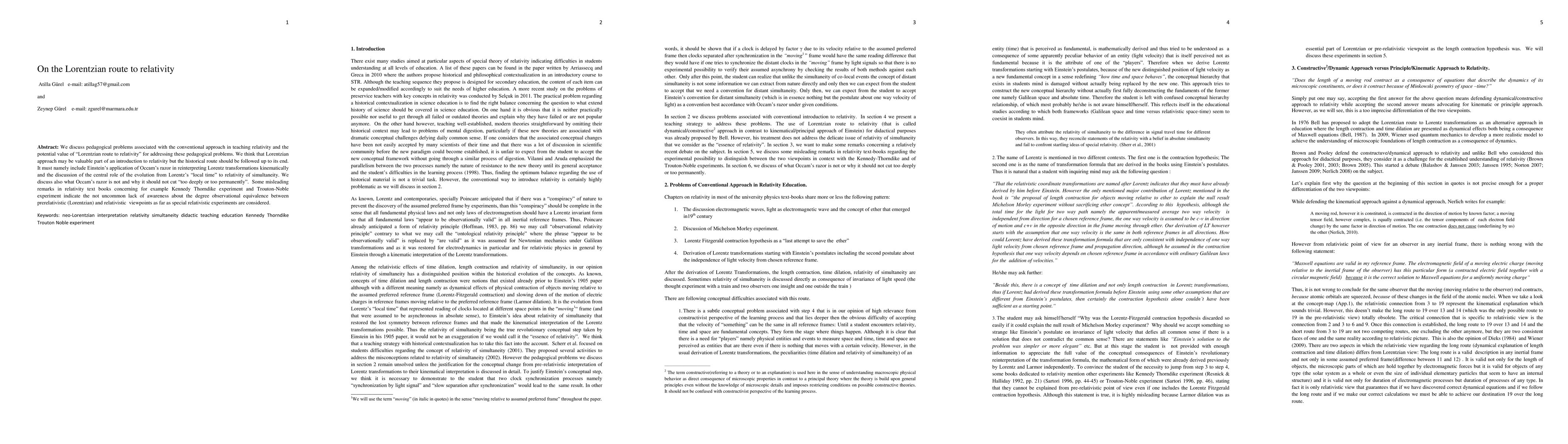This paper explores alternative pedagogical approaches to teaching relativity, advocating for the "Lorentzian route" to better address common teaching issues. It emphasizes the importance of fully understanding the historical evolution from Lorentz's theories to Einstein's relativity, including the role of Occam's razor and the concept of relativity of simultaneity.