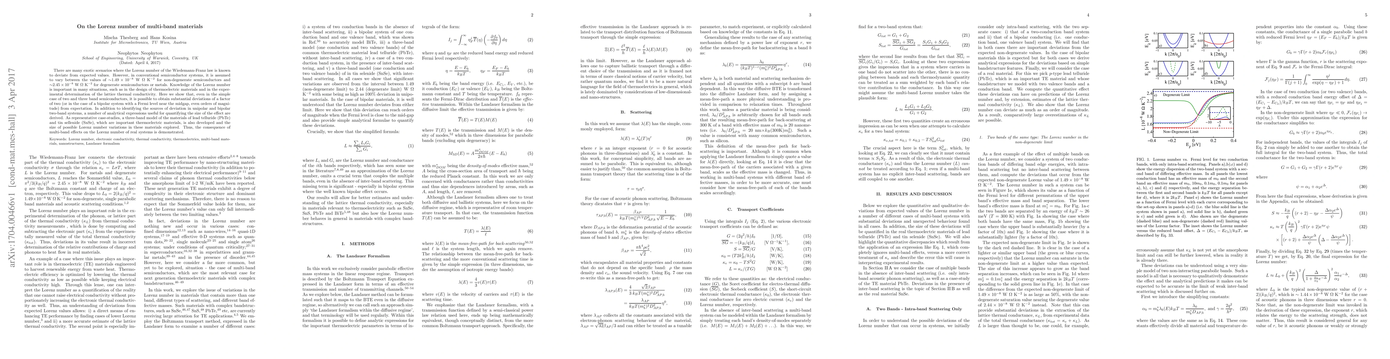 Researchers found that in multi-band materials, the Lorenz number can deviate from expected values by a factor of two, even in simple semiconductor systems, affecting thermoelectric material design and experimental lattice thermal conductivity measurements.