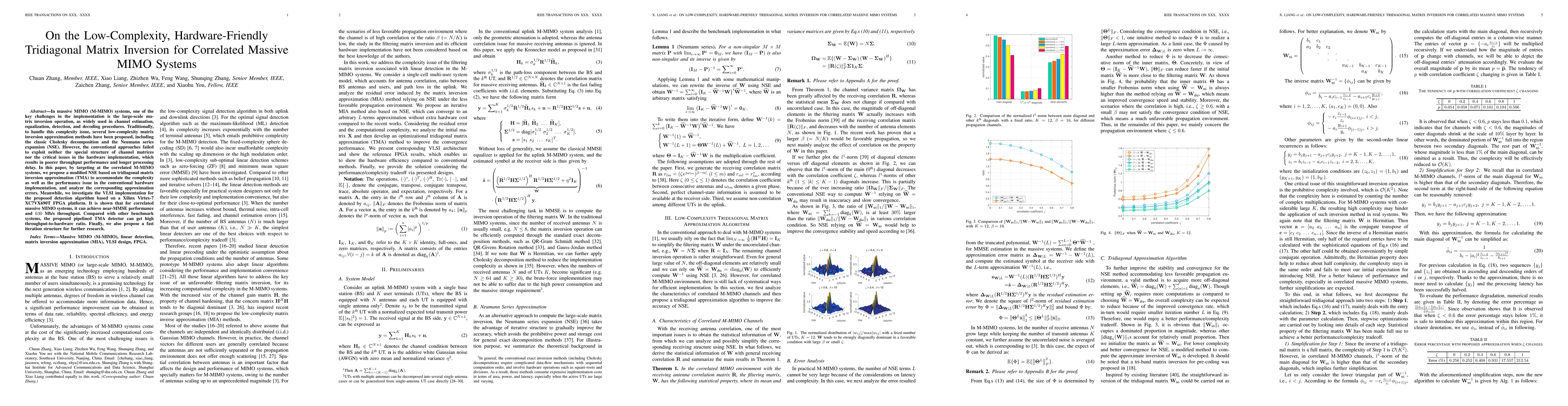 This paper proposes a modified Neumann series expansion (NSE) based on tridiagonal matrix inversion approximation (TMA) for correlated massive MIMO systems to address both complexity and hardware implementation issues. The proposed method achieves near-MMSE performance and a high throughput of 630 Mb/s on a Xilinx FPGA platform, demonstrating a superior throughput-to-hardware ratio compared to other systems.