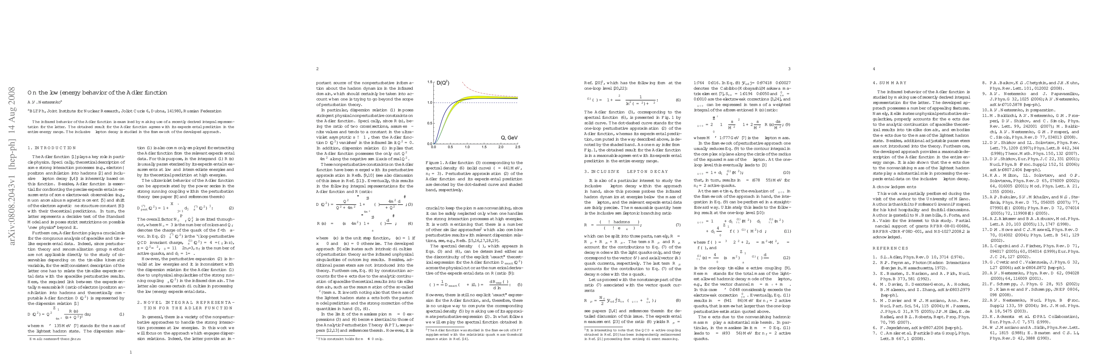 Researchers derived an integral representation for the Adler function, matching its experimental prediction across energy ranges, and applied it to study inclusive tau lepton decay.
