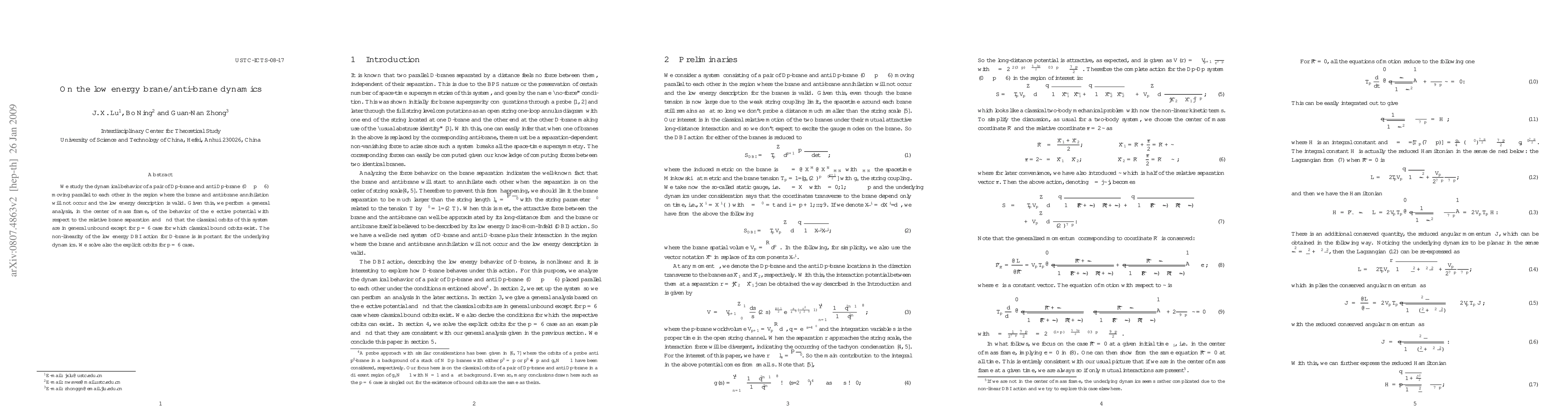 We study the dynamical behavior of a pair of Dp-brane and anti Dp-brane ($0 \leq p \leq 6$) moving parallel to each other in the region where the brane and anti-brane annihilation will not occur and the low energy description is valid. Given this, we perform a general analysis, in the center of mass frame, of the behavior of the effective potential with respect to the relative brane separation and find that the classical orbits of this system are in general unbound except for $p = 6$ case for which classical bound orbits exist. The non-linearity of the low energy DBI action for D-brane is important for the underlying dynamics. We solve also the explicit orbits for $p = 6$ case.