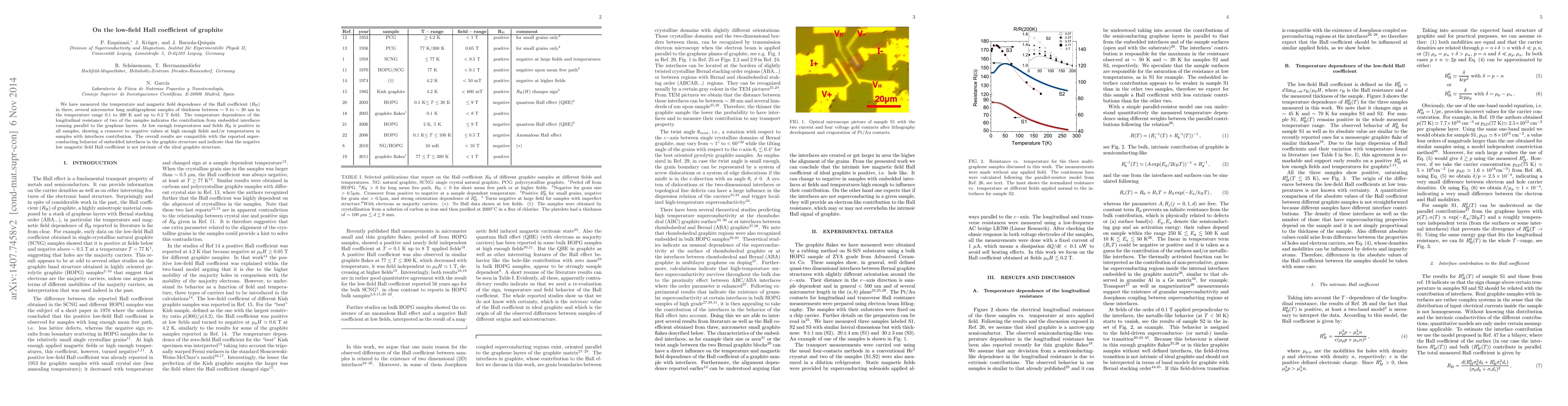 Researchers studied graphite's Hall coefficient at low temperatures and magnetic fields, finding it to be positive initially but becoming negative under certain conditions, suggesting non-intrinsic behavior of the ideal graphite structure.