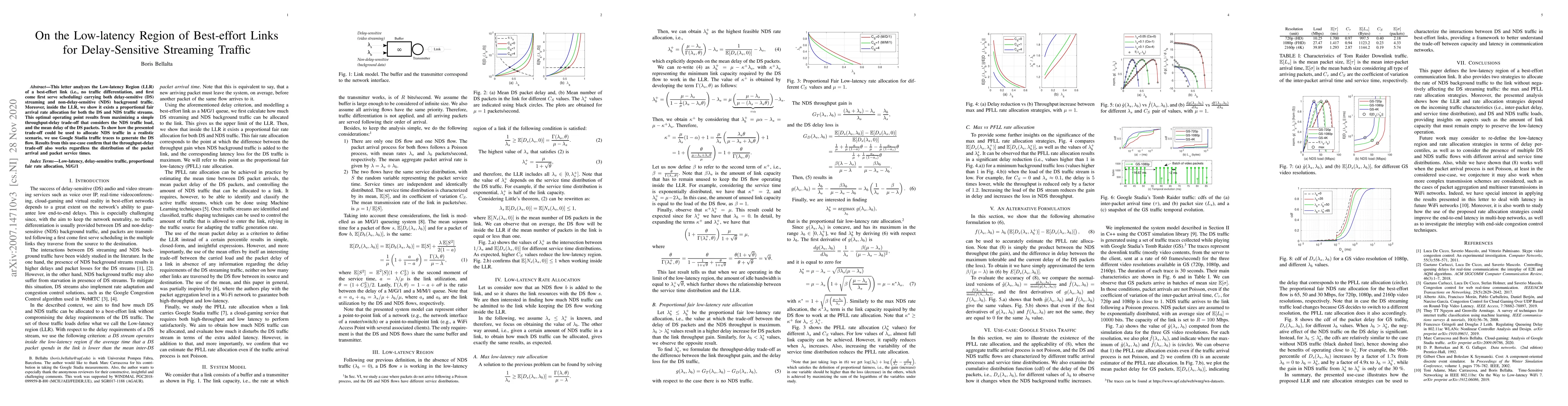 This letter analyzes the Low-latency Region (LLR) of a best-effort link (i.e., no traffic differentiation, and first come first serve scheduling) carrying both delay-sensitive (DS) streaming and non-delay-sensitive (NDS) background traffic. Moreover, inside the LLR, we show it exists a proportional fair arrival rate allocation for both the DS and NDS traffic streams. This optimal operating point results from maximizing a simple throughput-delay trade-off that considers the NDS traffic load, and the mean delay of the DS packets. To show how the presented trade-off could be used to allocate NDS traffic in a realistic scenario, we use Google Stadia traffic traces to generate the DS flow. Results from this use-case confirm that the throughput-delay trade-off also works regardless the distribution of the packet arrival and packet service times.
