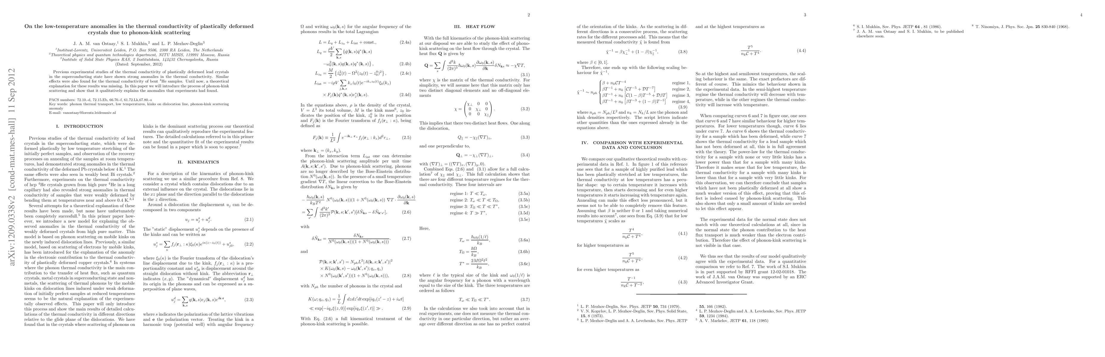 This paper introduces phonon-kink scattering as a mechanism to explain the low-temperature anomalies in thermal conductivity observed in plastically deformed crystals, filling a theoretical gap left by previous experimental findings in lead crystals and bent ${}^4\text{He}$ samples.