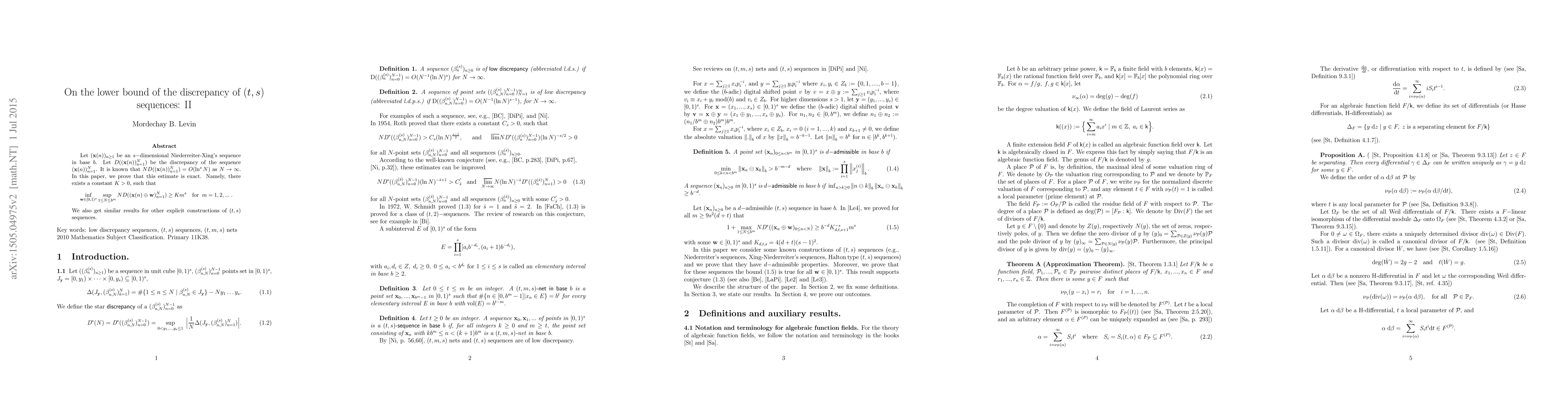 Let $ (\bx(n))_{n \geq 1} $ be an $s-$dimensional Niederreiter-Xing sequence in base $b$. Let $D((\bx(n))_{n = 1}^{N})$ be the discrepancy of the sequence $ (\bx(n))_{n = 1}^{N} $. It is known that $N D((\bx(n))_{n = 1}^{N}) =O(\ln^s N)$ as $N \to \infty $. In this paper, we prove that this estimate is exact. Namely, there exists a constant $K>0$, such that $$ \inf_{\bw \in [0,1)^s} \sup_{1 \leq N \leq b^m} N D((\bx(n)\oplus \bw)_{n = 1}^{N}) \geq K m^s \quad {\rm for} \; \; m=1,2,...\;. $$ We also get similar results for other explicit constructions of $(t,s)$ sequences.