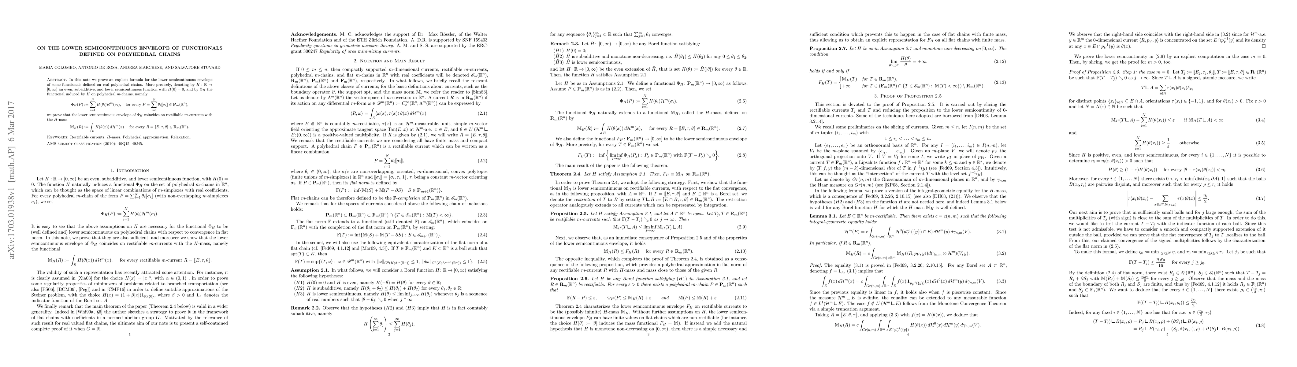 This paper provides an explicit formula for the lower semicontinuous envelope of functionals defined on real polyhedral chains, showing that it coincides with the $H$-mass for rectifiable $m$-currents. The functional $\Phi_H$ is induced by an even, subadditive, and lower semicontinuous function $H$ with $H(0)=0$.