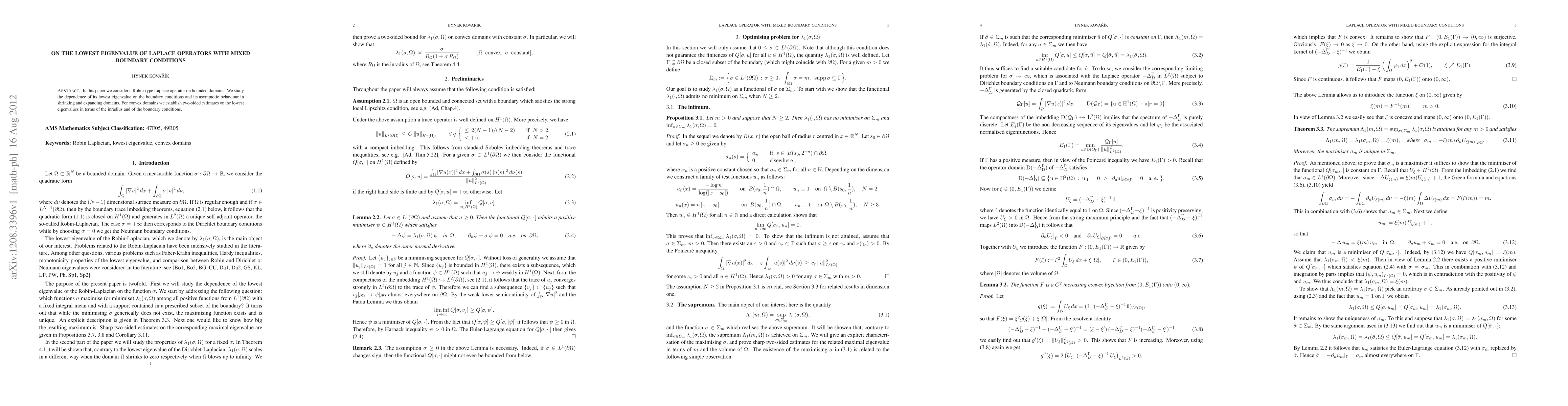 This paper investigates the lowest eigenvalue of a Robin-type Laplace operator on bounded domains, focusing on its dependence on mixed boundary conditions and asymptotic behavior in domains that shrink or expand. For convex domains, it provides two-sided estimates relating the lowest eigenvalue to the inradius and boundary conditions.
