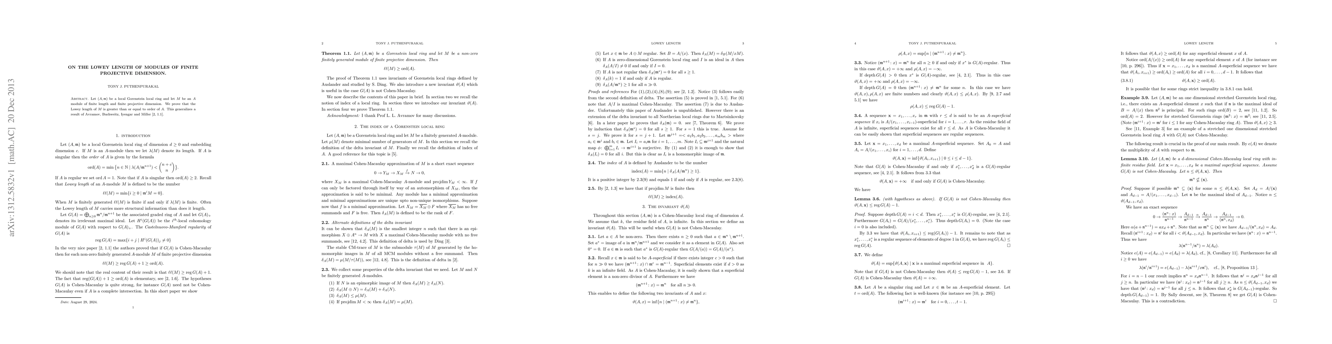 A study on local Gorenstein rings proves that the Lowey length of a module with finite projective dimension is greater than or equal to the order of the ring.