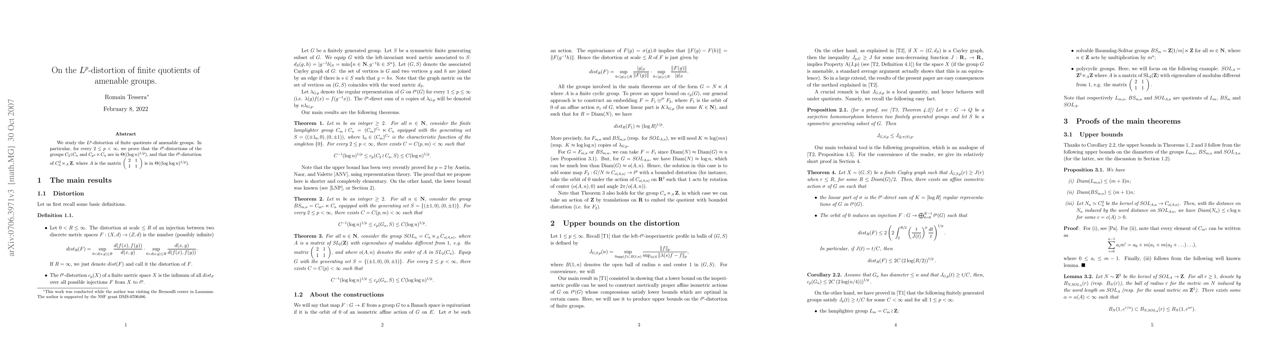 This paper studies L^p-distortion of finite quotients of amenable groups, finding that it grows like ( heta n)^{1/p} for p >= 2, with specific applications to the lamplighter group and certain metabelian polycyclic groups.