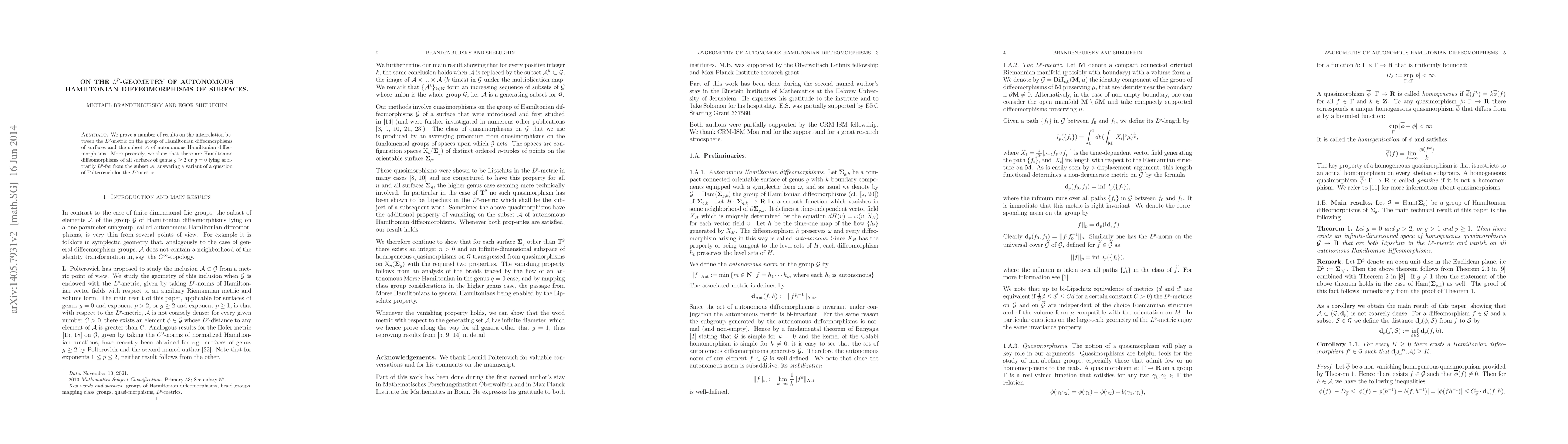 This paper investigates the $L^p$-geometry of Hamiltonian diffeomorphisms on surfaces, demonstrating that for genus $g\neq 1$, there exist diffeomorphisms that are $L^p$-far from the subset of autonomous Hamiltonian diffeomorphisms, addressing a question posed by Polterovich.