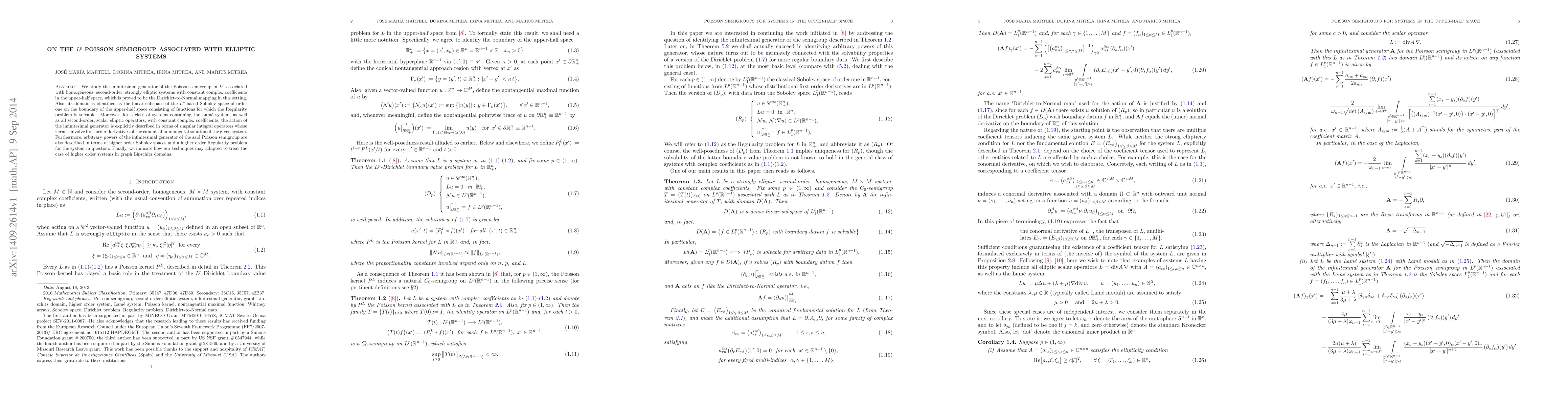 We study the infinitesimal generator of the Poisson semigroup in $L^p$ associated with homogeneous, second-order, strongly elliptic systems with constant complex coefficients in the upper-half space, which is proved to be the Dirichlet-to-Normal mapping in this setting. Also, its domain is identified as the linear subspace of the $L^p$-based Sobolev space of order one on the boundary of the upper-half space consisting of functions for which the Regularity problem is solvable. Moreover, for a class of systems containing the Lam\'e system, as well as all second-order, scalar elliptic operators, with constant complex coefficients, the action of the infinitesimal generator is explicitly described in terms of singular integral operators whose kernels involve first-order derivatives of the canonical fundamental solution of the given system. Furthermore, arbitrary powers of the infinitesimal generator of the said Poisson semigroup are also described in terms of higher order Sobolev spaces and a higher order Regularity problem for the system in question. Finally, we indicate how our techniques may adapted to treat the case of higher order systems in graph Lipschitz domains.