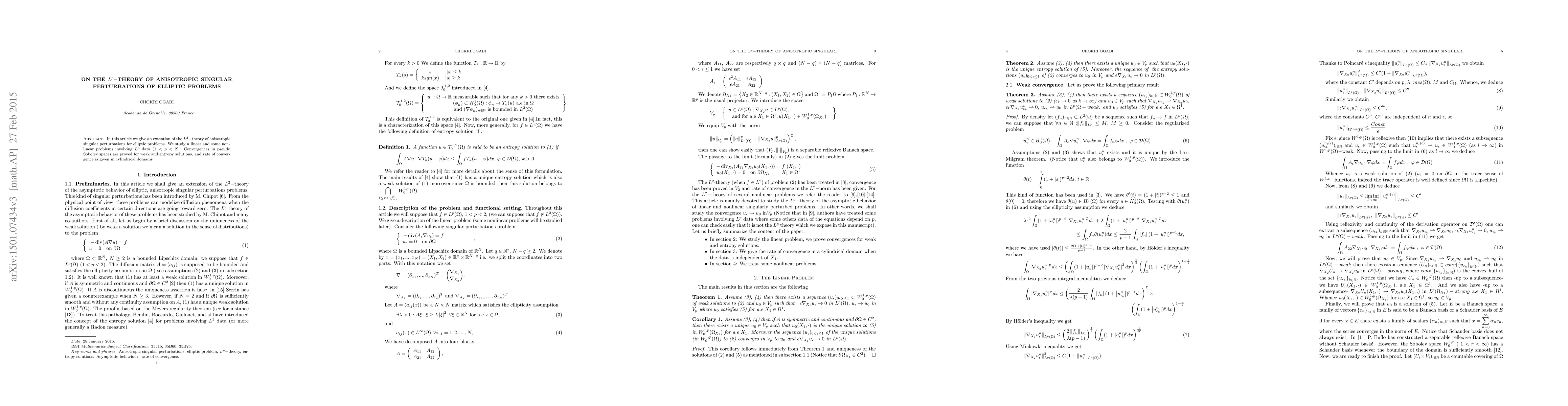 This paper extends the L^2-theory for anisotropic singular perturbations of elliptic problems to L^p spaces (1<p<2). It proves convergence in pseudo Sobolev spaces for weak and entropy solutions in cylindrical domains, providing a rate of convergence for these solutions.