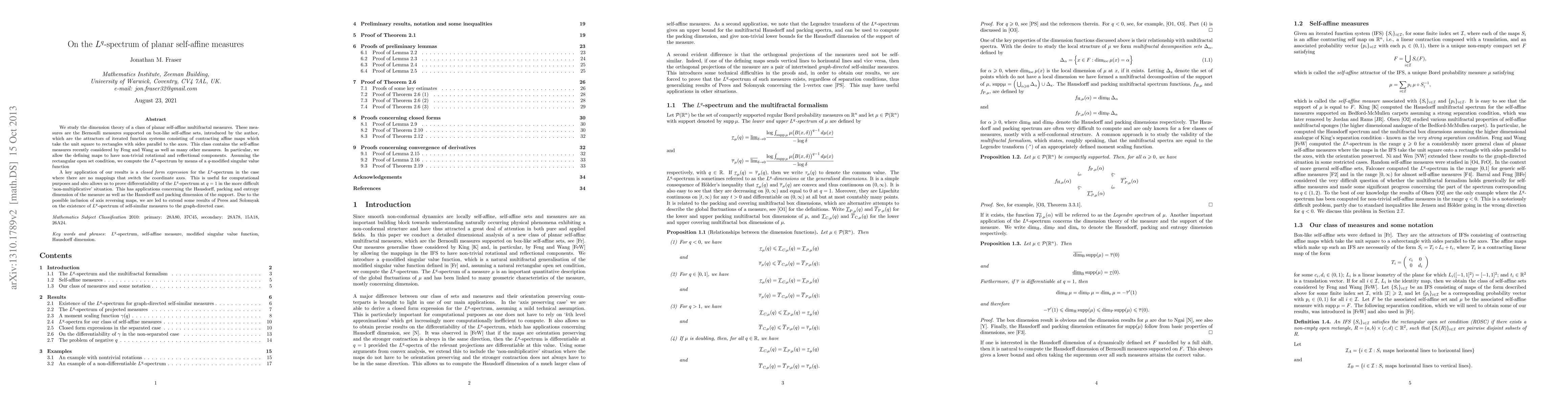 We study the dimension theory of a class of planar self-affine multifractal measures. These measures are the Bernoulli measures supported on box-like self-affine sets, introduced by the author, which are the attractors of iterated function systems consisting of contracting affine maps which take the unit square to rectangles with sides parallel to the axes. This class contains the self-affine measures recently considered by Feng and Wang as well as many other measures. In particular, we allow the defining maps to have non-trivial rotational and reflectional components. Assuming the rectangular open set condition, we compute the $L^q$-spectrum by means of a $q$-modified singular value function. A key application of our results is a \emph{closed form expression} for the $L^q$-spectrum in the case where there are no mappings that switch the coordinate axes. This is useful for computational purposes and also allows us to prove differentiability of the $L^q$-spectrum at $q=1$ in the more difficult `non-multiplicative' situation. This has applications concerning the Hausdorff, packing and entropy dimension of the measure as well as the Hausdorff and packing dimension of the support. Due to the possible inclusion of axis reversing maps, we are led to extend some results of Peres and Solomyak on the existence of $L^q$-spectrum of self-similar measures to the graph-directed case.