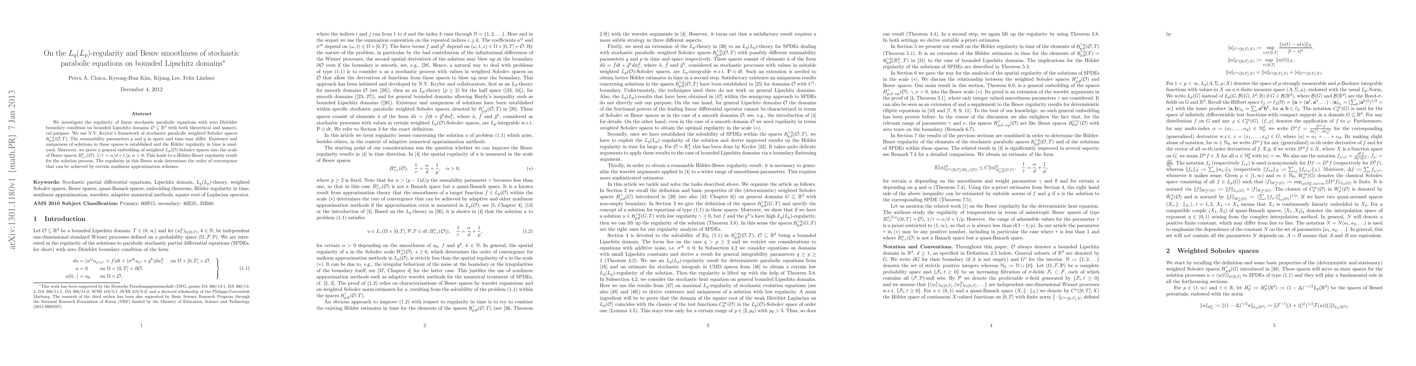 This paper explores the regularity of linear stochastic parabolic equations on bounded Lipschitz domains, establishing existence and uniqueness in weighted Sobolev spaces. It also proves an embedding of these spaces into Besov spaces, leading to H\"older-Besov regularity results that inform the convergence rates of nonlinear approximation schemes.