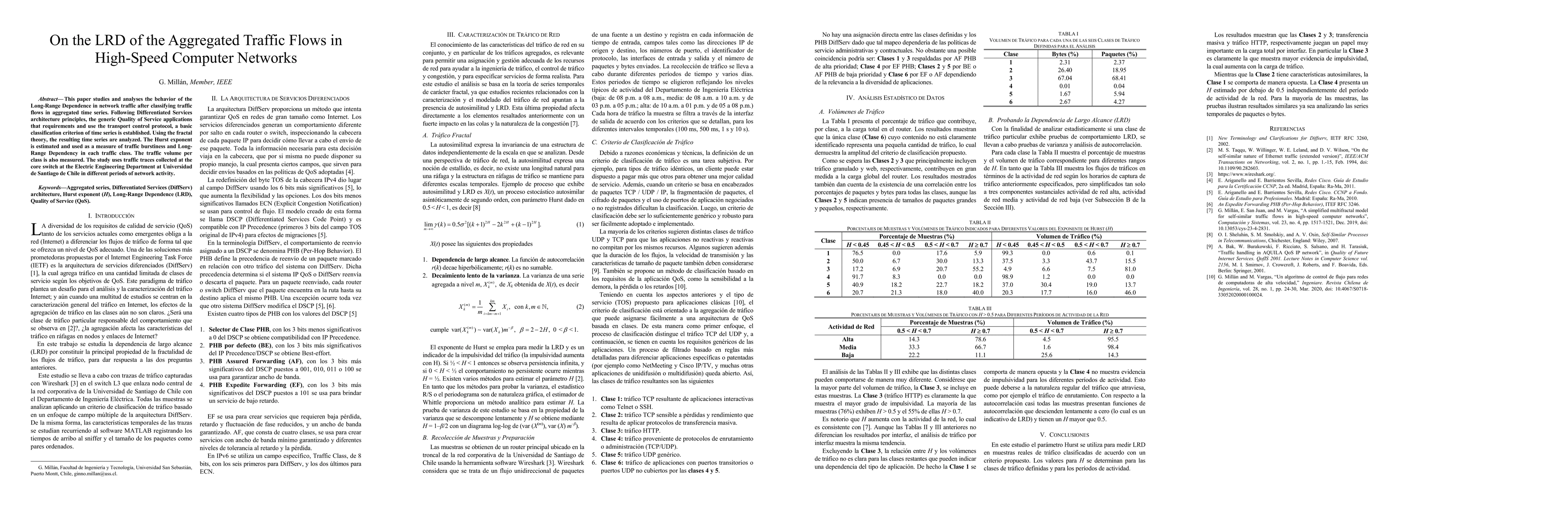 This paper studies and analyses the behavior of the Long-Range Dependence in network traffic after classifying traffic flows in aggregated time series. Following Differentiated Services architecture principles, the generic Quality of Service applications that requirements and use the transport control protocol, a basic classification criterion of time series is established. Using the fractal theory, the resulting time series are analyzed. The Hurst exponent is estimated and used as a measure of traffic burstiness and Long-Range Dependency in each traffic class. The traffic volume per class is also measured. The study uses traffic traces collected at the core switch at the Electric Engineering Department at Universidad de Santiago de Chile in different periods of network activity.