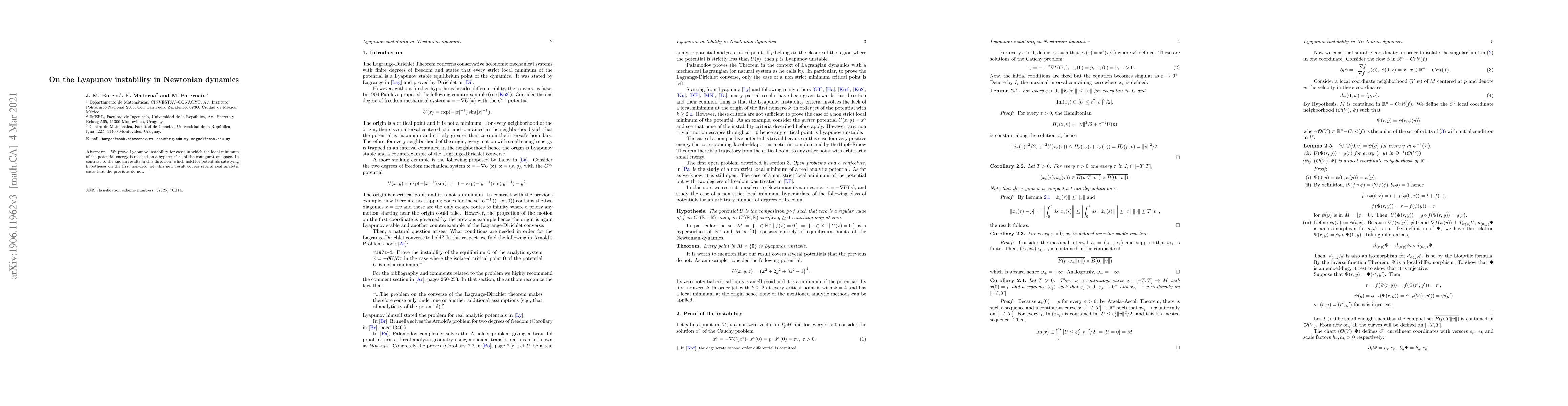 We prove Lyapunov instability for cases in which the local minimum of the potential energy is reached on a hypersurface of the configuration space. In contrast to the known results in this direction, which hold for potentials satisfying hypotheses in the first non-zero jet, this new result covers several real analytic cases that the previous ones do not.