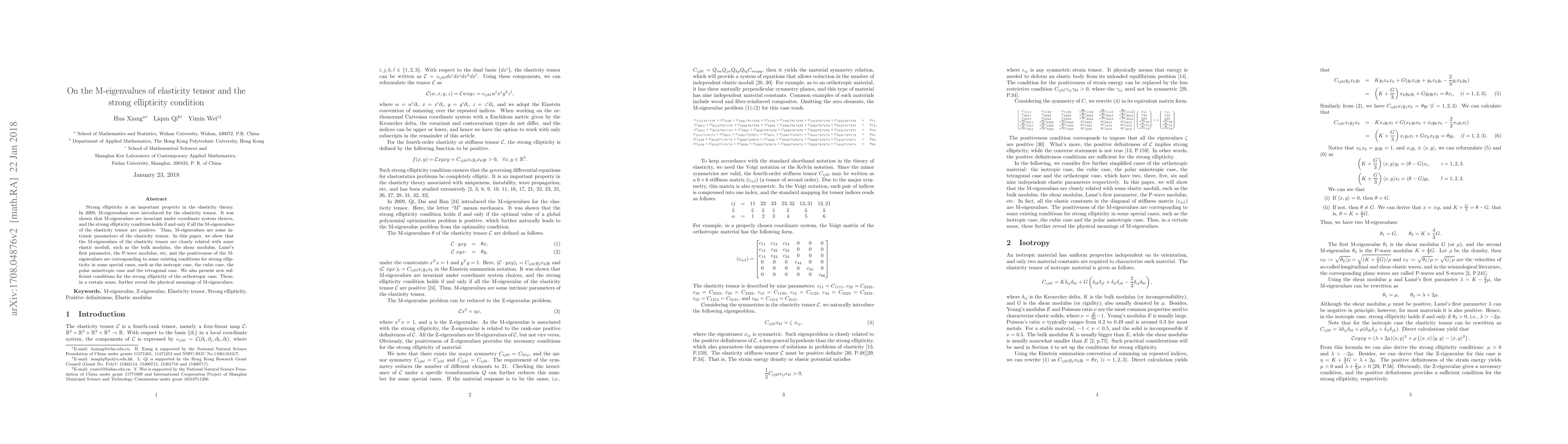 Researchers link elasticity tensor M-eigenvalues to elastic moduli and strong ellipticity conditions in various material cases, providing new insights into the physical meanings of M-eigenvalues.
