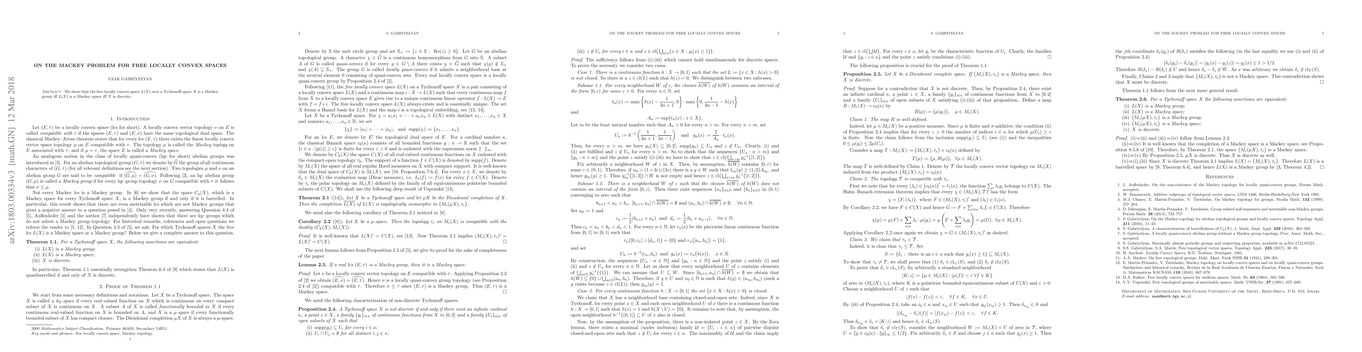 We show that the free locally convex space $L(X)$ over a Tychonoff space $X$ is a Mackey group iff $L(X)$ is a Mackey space iff $X$ is discrete.