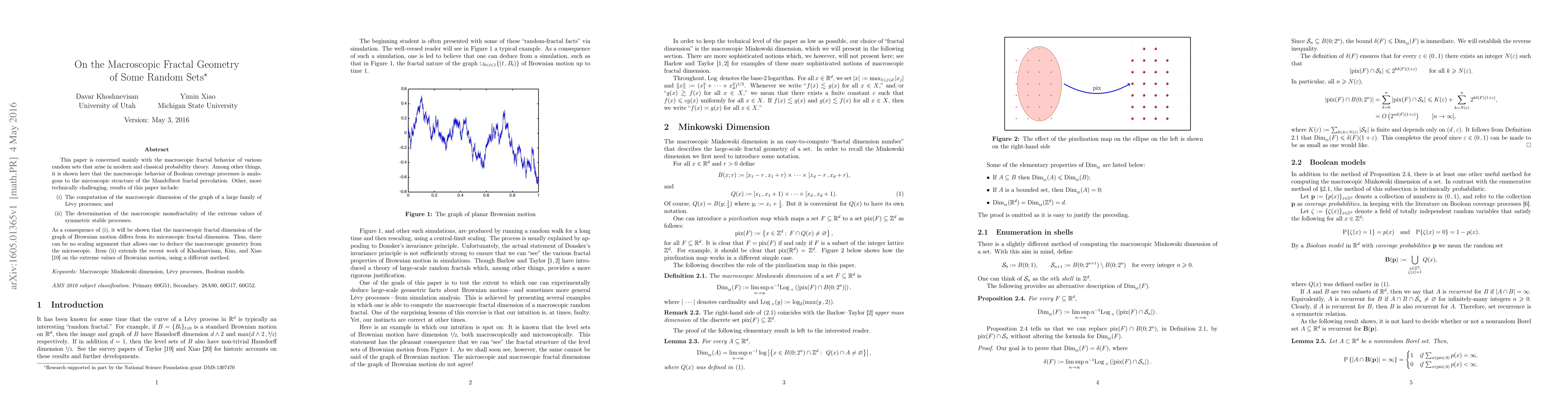This paper explores the macroscopic fractal behavior of random sets in probability theory, revealing a difference between the macroscopic and microscopic geometry of Brownian motion.
