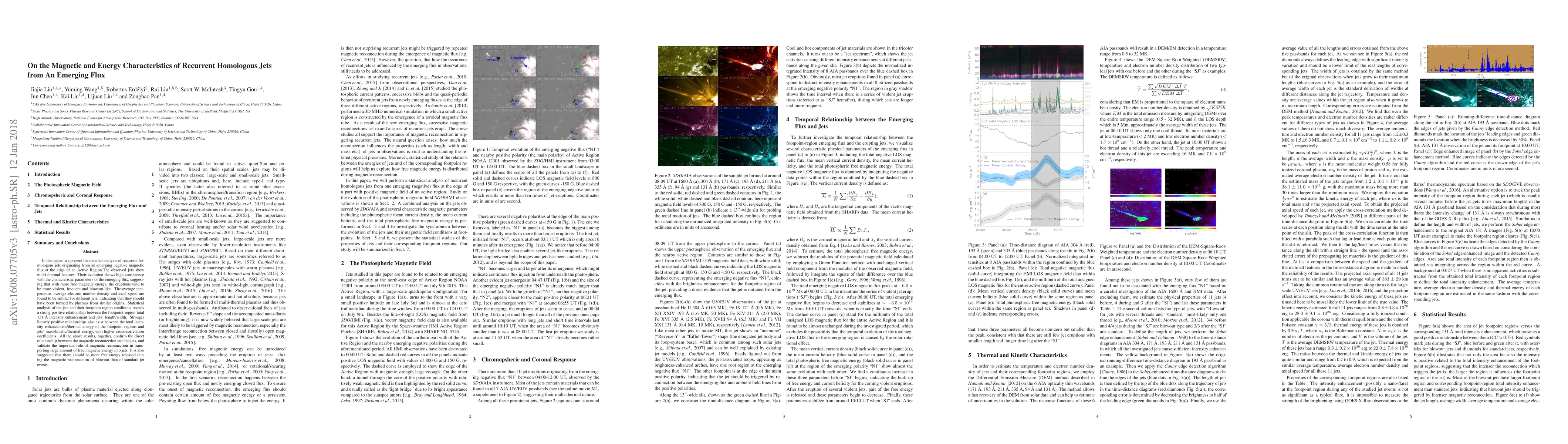 This study examines recurrent homologous jets from an emerging negative magnetic flux in Active Regions, finding that jet characteristics like temperature, density, and speed are consistent across events. The research reveals a strong correlation between footpoint region intensity and jet properties, suggesting magnetic reconnection plays a crucial role in transferring free energy to these jets. The findings indicate that blowout jets release more energy than standard jets during magnetic reconnection.