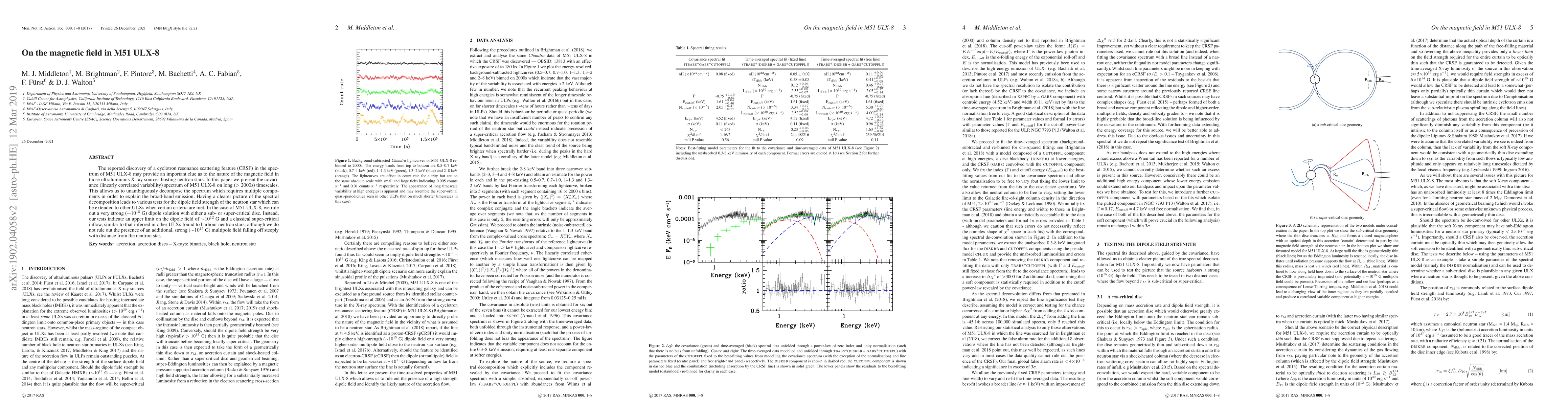 The reported discovery of a cyclotron resonance scattering feature (CRSF) in the spectrum of M51 ULX-8 may provide an important clue as to the nature of the magnetic field in those ultraluminous X-ray sources hosting neutron stars. In this paper we present the covariance (linearly correlated variability) spectrum of M51 ULX-8 on long (> 2000s) timescales. This allows us to unambiguously decompose the spectrum which requires multiple components in order to explain the broad-band emission. Having a clearer picture of the spectral decomposition leads to various tests for the dipole field strength of the neutron star which can be extended to other ULXs when certain criteria are met. In the case of M51 ULX-8, we rule out a very strong (~10^15 G) dipole solution with either a sub- or super-critical disc. Instead, our tests indicate an upper limit on the dipole field of ~10^12 G, and a classical super-critical inflow, similar to that inferred in other ULXs found to harbour neutron stars, although we do not rule out the presence of an additional, strong (~10^15 G) multipole field falling off steeply with distance from the neutron star.