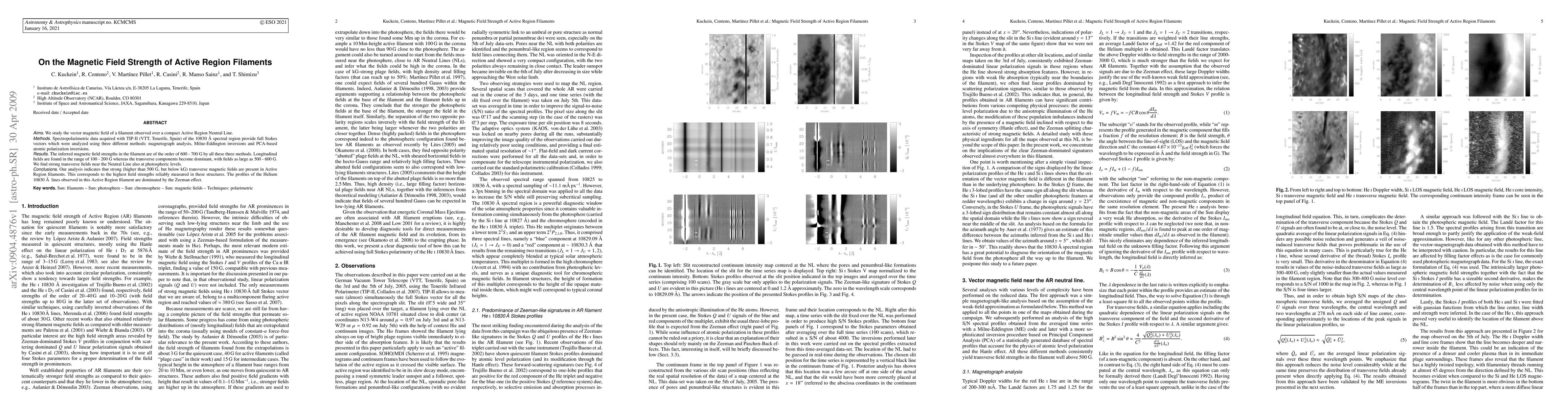 We study the vector magnetic field of a filament observed over a compact Active Region Neutral Line. Spectropolarimetric data acquired with TIP-II (VTT, Tenerife, Spain) of the 10830 \AA spectral region provide full Stokes vectors which were analyzed using three different methods: magnetograph analysis, Milne-Eddington inversions and PCA-based atomic polarization inversions. The inferred magnetic field strengths in the filament are of the order of 600 - 700 G by all these three methods. Longitudinal fields are found in the range of 100 - 200 G whereas the transverse components become dominant, with fields as large as 500 - 600 G. We find strong transverse fields near the Neutral Line also at photospheric levels. Our analysis indicates that strong (higher than 500 G, but below kG) transverse magnetic fields are present in Active Region filaments. This corresponds to the highest field strengths reliably measured in these structures. The profiles of the Helium 10830 \AA lines observed in this Active Region filament are dominated by the Zeeman effect.